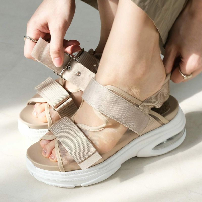 涼しげなシアー素材×厚底エアーソールがおしゃれなスポーツサンダル
