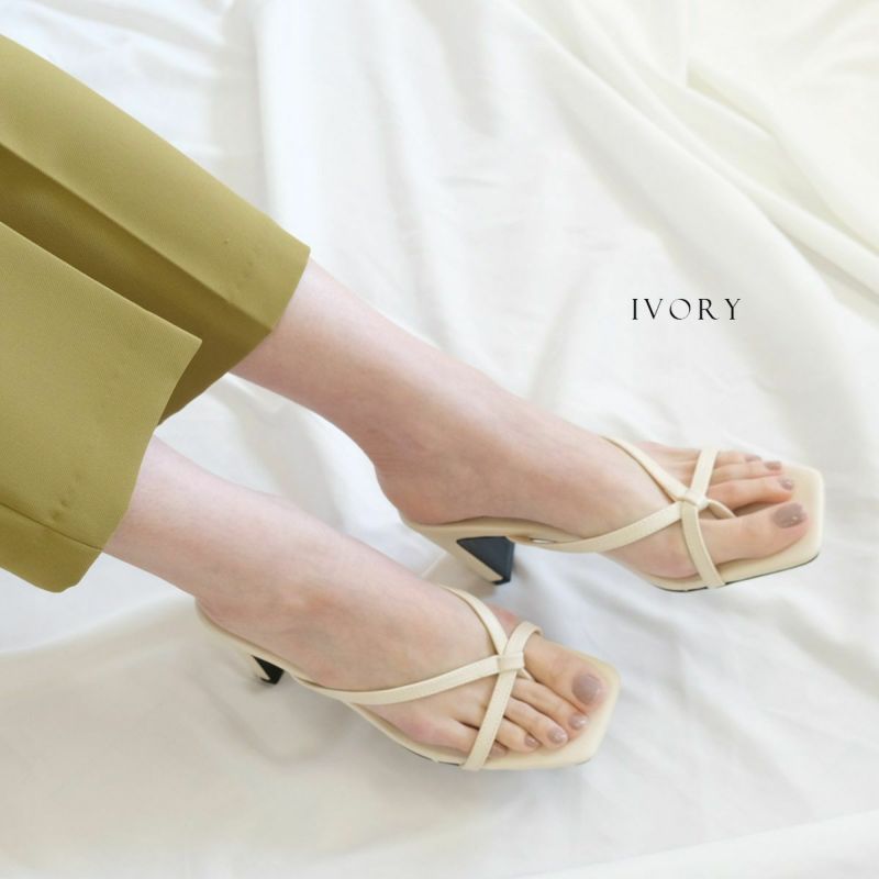 華奢な細ストラップが女らしいトングデザイン大人モードなプレートヒールなので安定感があり歩きやすい