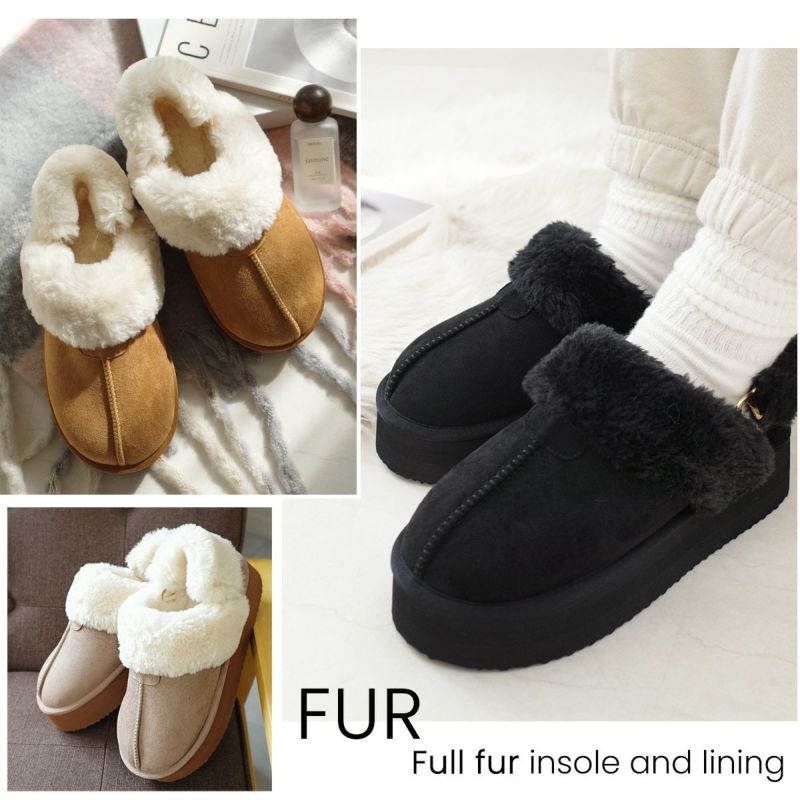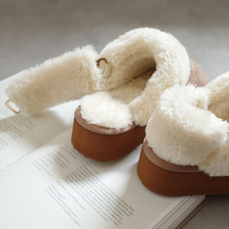 内側や中敷、ストラップにファーをたっぷりと使用し、ふわふわの履き心地で、防寒効果もばっちり。