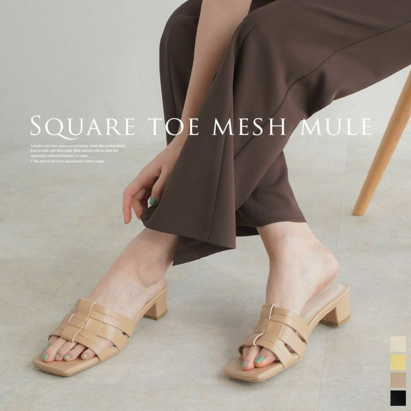 【在庫限り!特別価格!】スクエアトゥメッシュミュールサンダル レディース