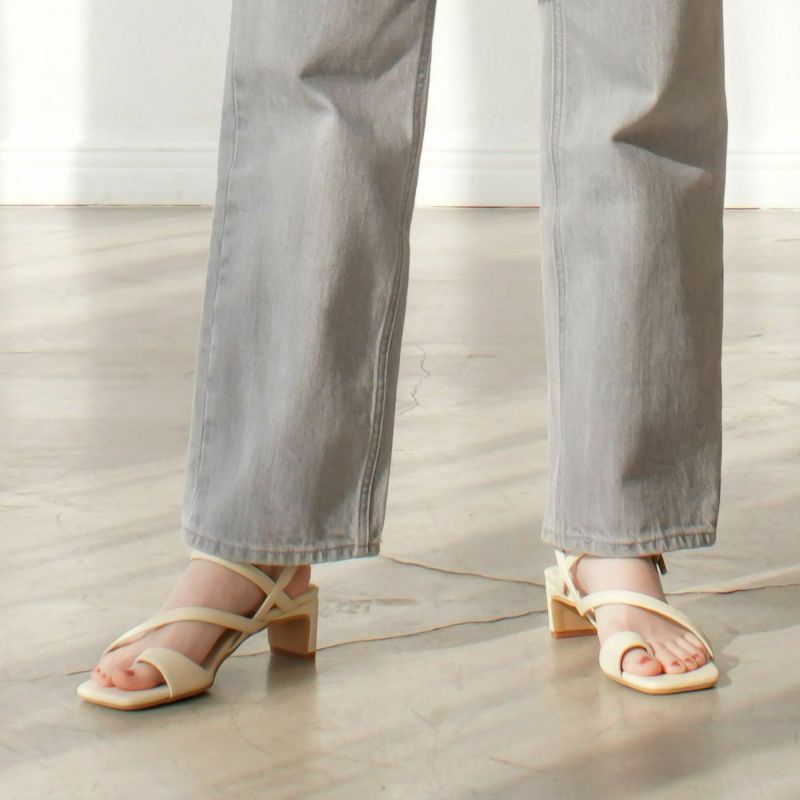 大人モードな4.5cmのプレートヒールなので安定感抜群!華奢な細ストラップが女らしさとサムリングでカジュアルさもプラス!