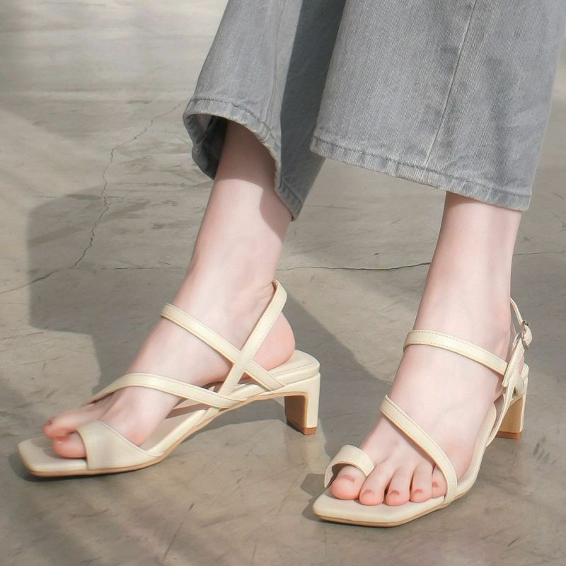【在庫限り!特別価格!】スクエアトゥプレートヒールサムリングサンダル レディース