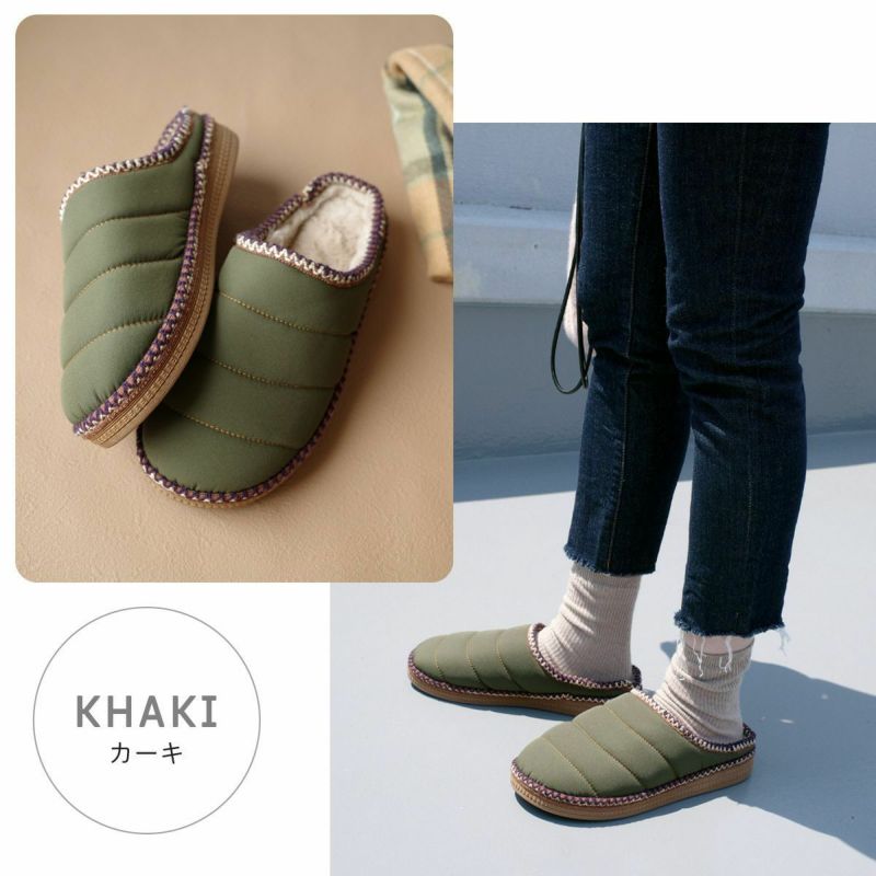 キャンプで使用したり、オフィスの内履きとしても最適!ステッチデザインが可愛いポイント。