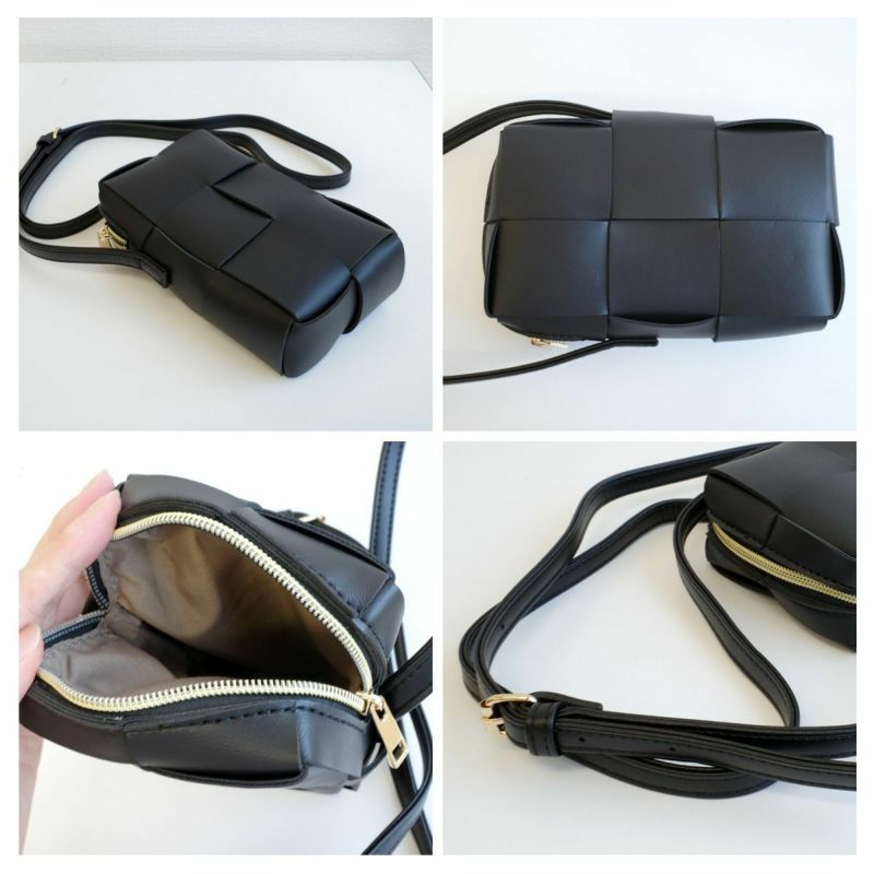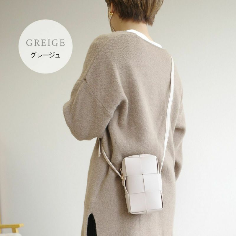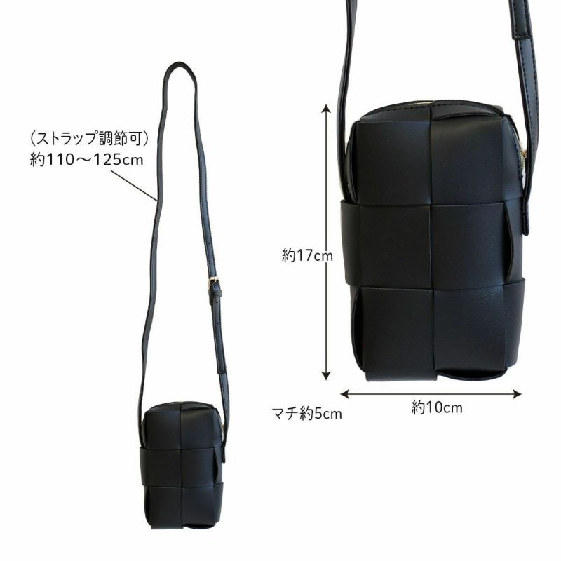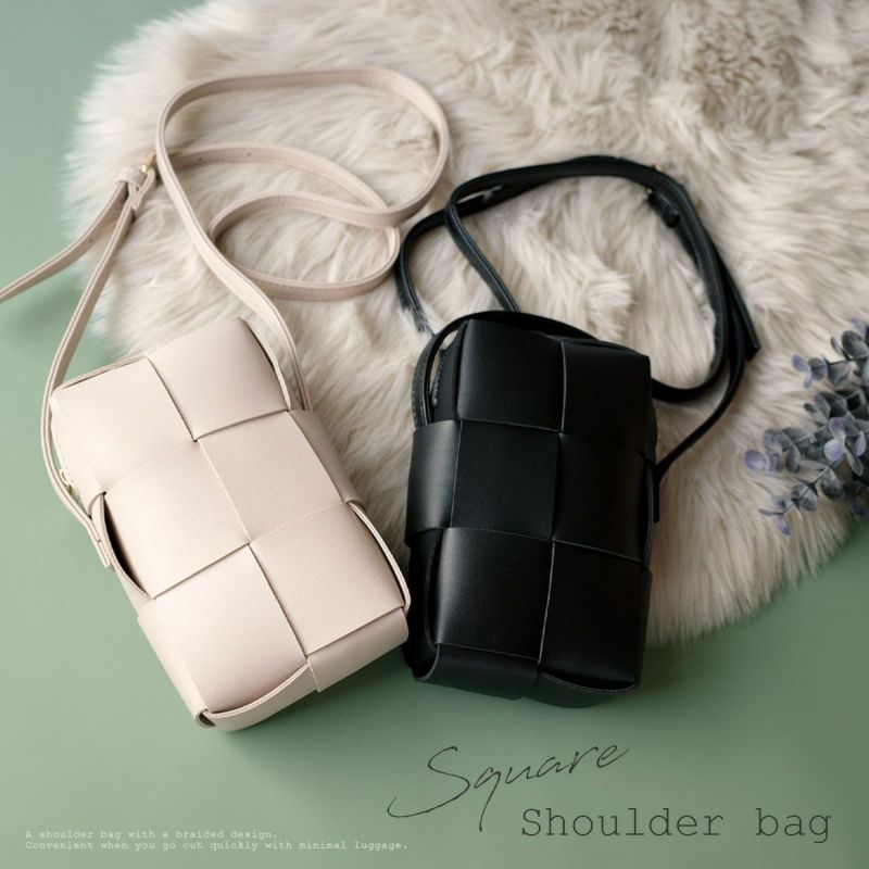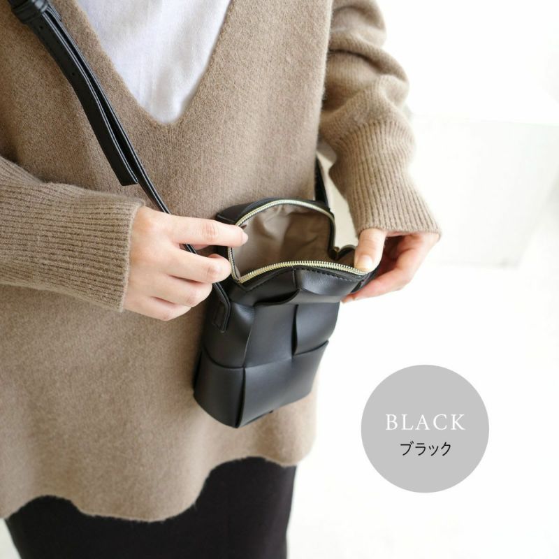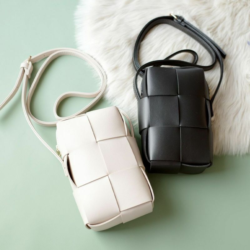 編み込みデザインのミニショルダー。上品な質感の合成皮革なので、きれいめコーデにもぴったり。