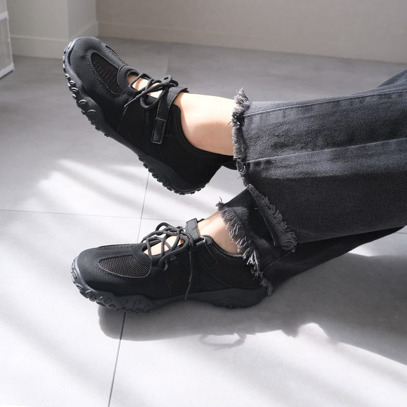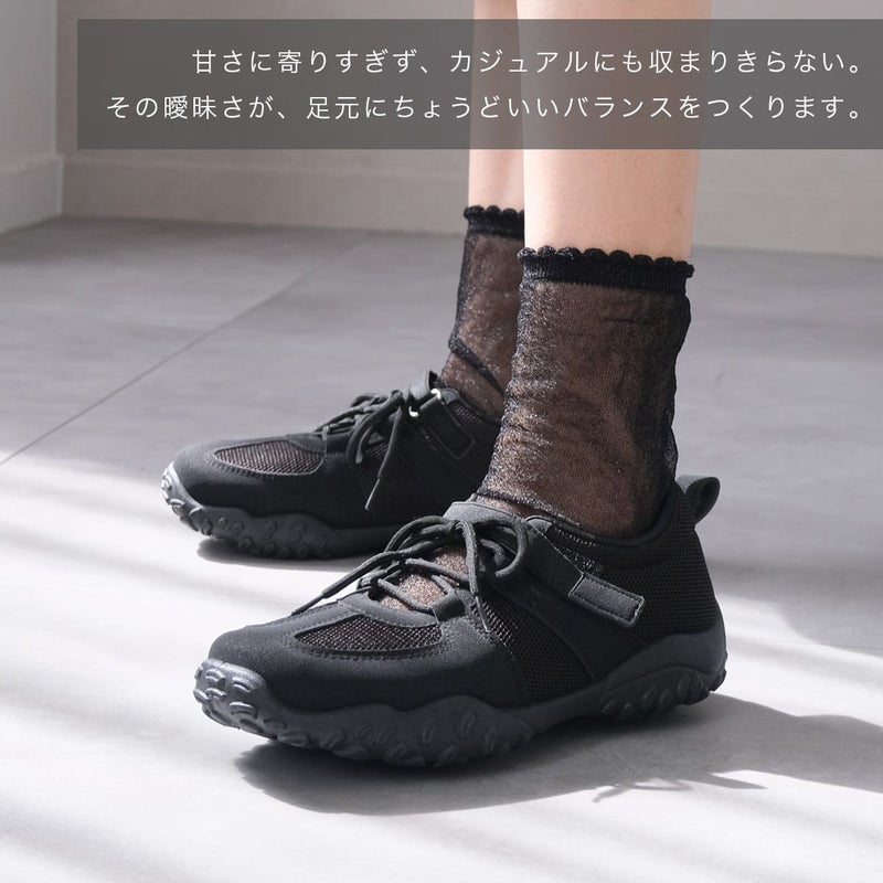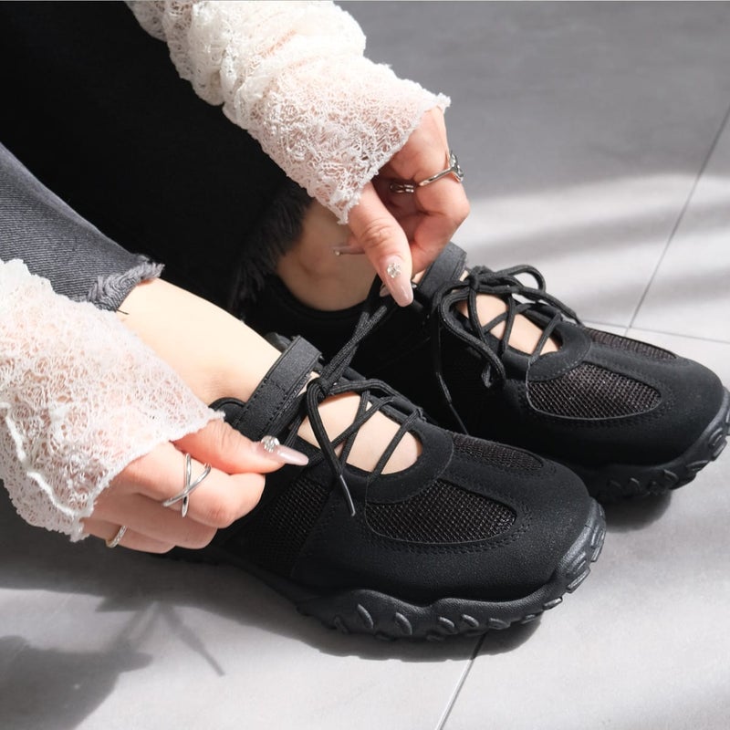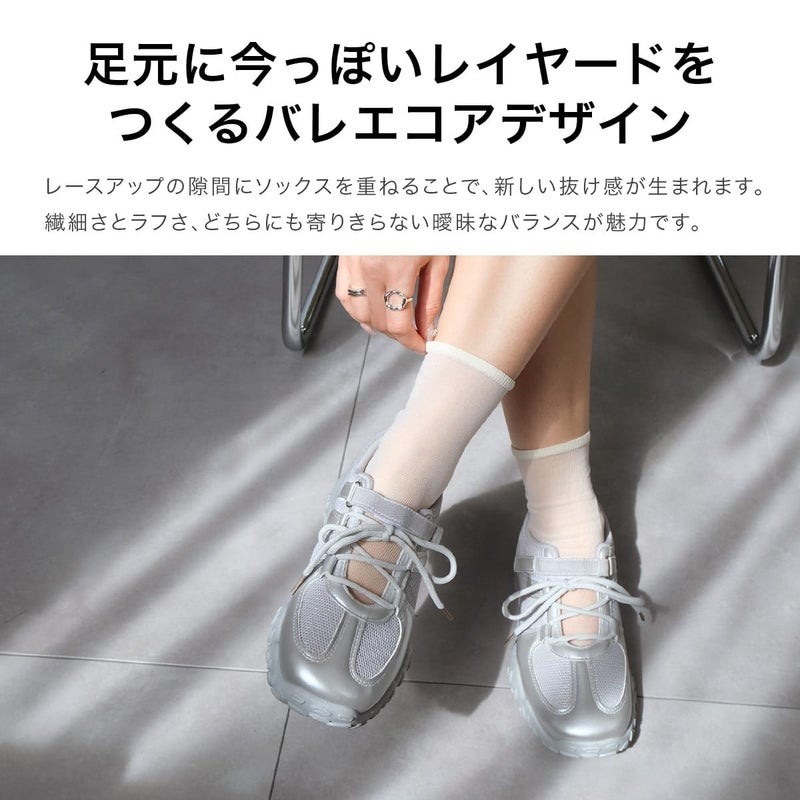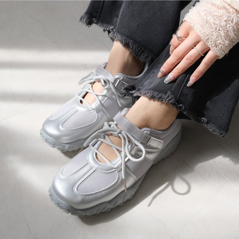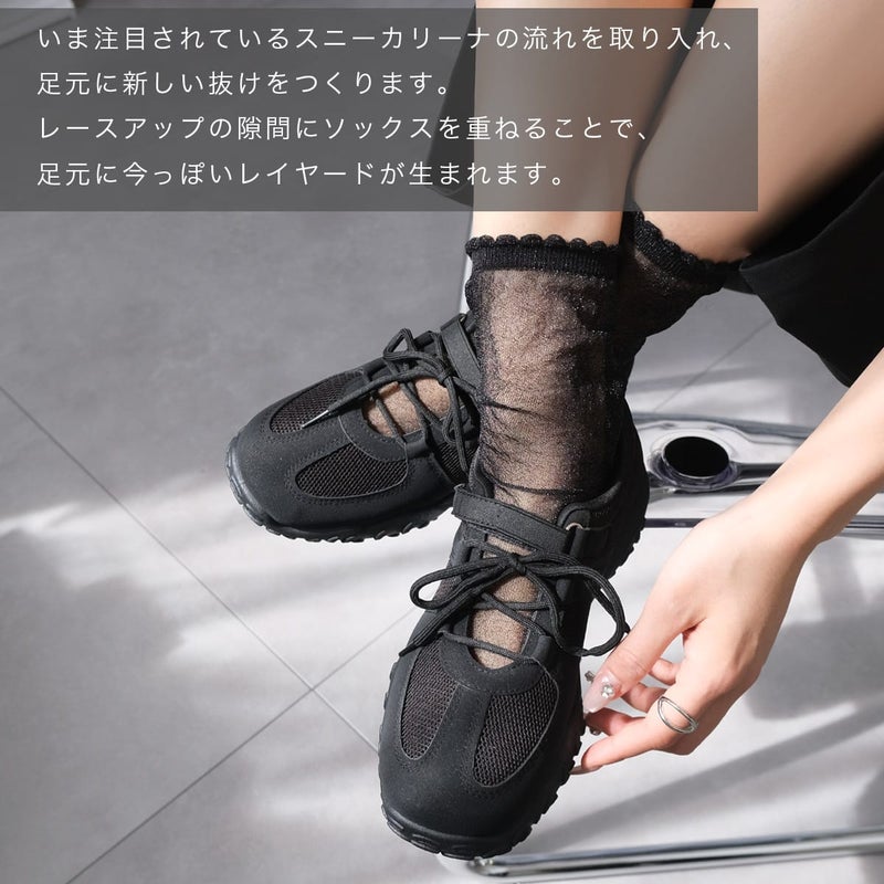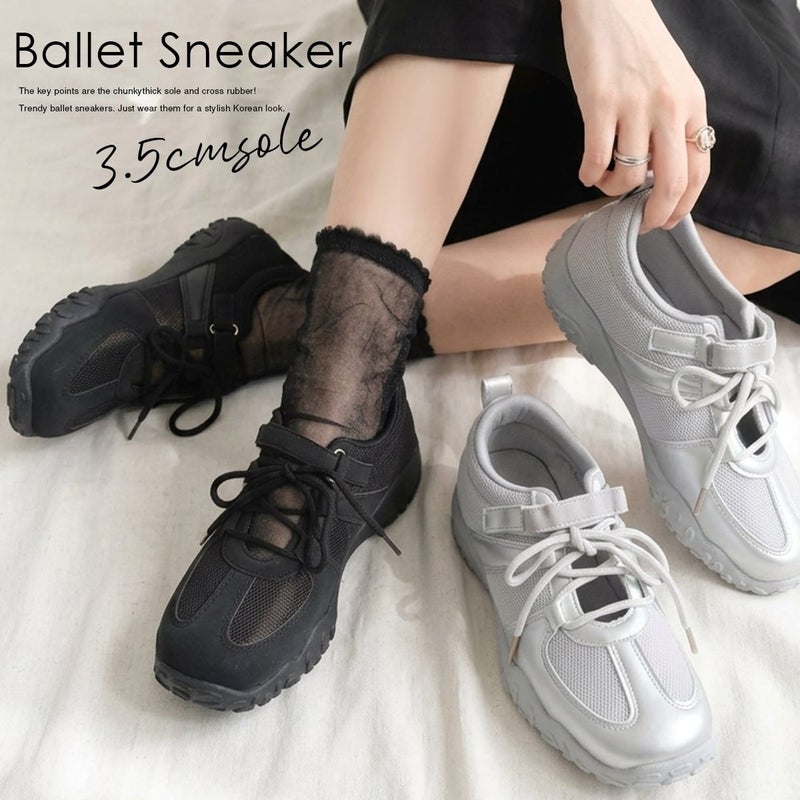 バレエスニーカーレースアップメッシュ異素材コンビフィット感歩きやすいレディース韓国バレエコアスニーカリーナ レディース