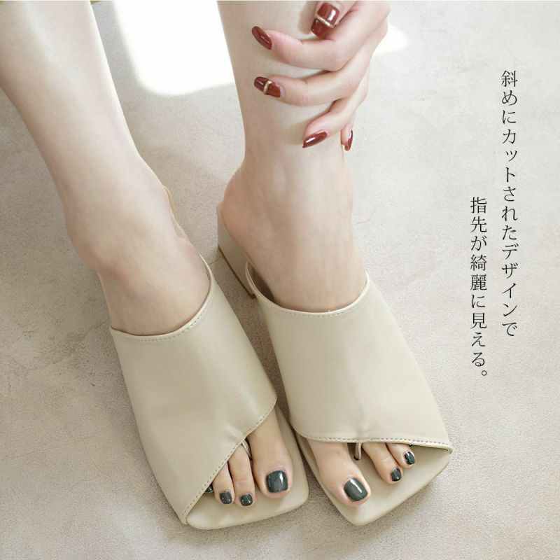 夏の軽い装いに、足元はボリュームをだし、バランスをとるのがおすすめ斜めにカットされたデザインで指先が綺麗に見える。