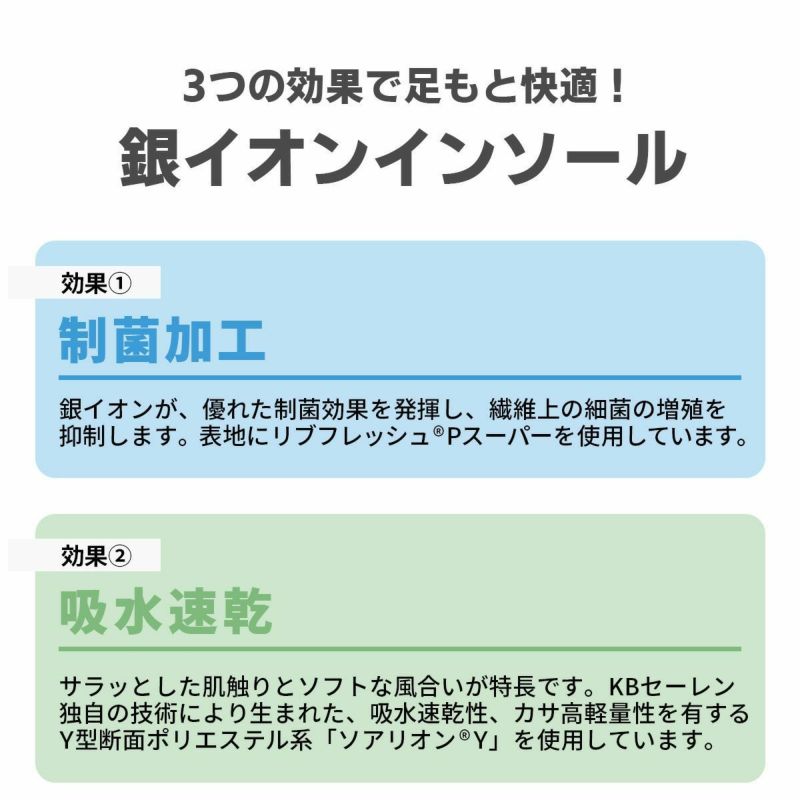 優れた制菌効果を発揮し、細菌の増殖を抑制してくれます。通気性に優れ、梅雨時や夏のムレやすい季節でも靴の中を快適に保ちます。