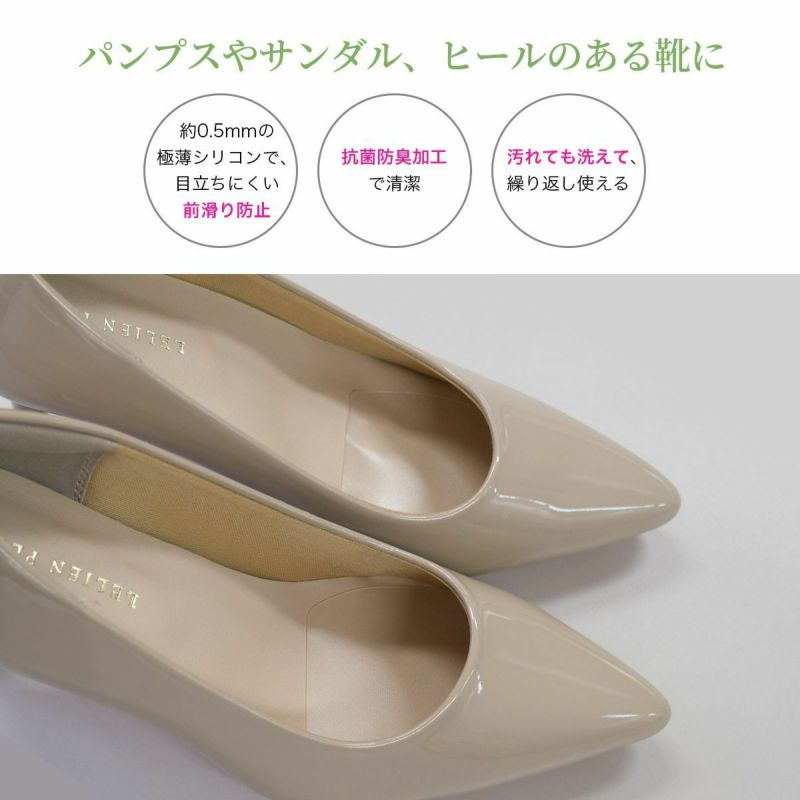 約0.5ミリ極薄シリコンで靴中が窮屈にならずに前滑りを防止
