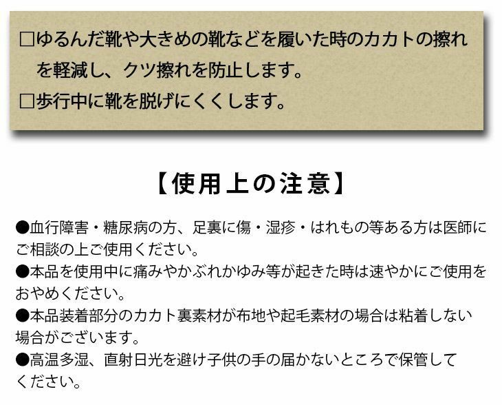 クツずれを防止し歩行中に靴を脱げにくくする効果も。