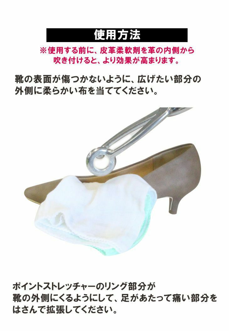 小指のウオの目や外反母趾など靴にあたって痛む部分を広げて、痛みをやわらげますポイントストレッチャー