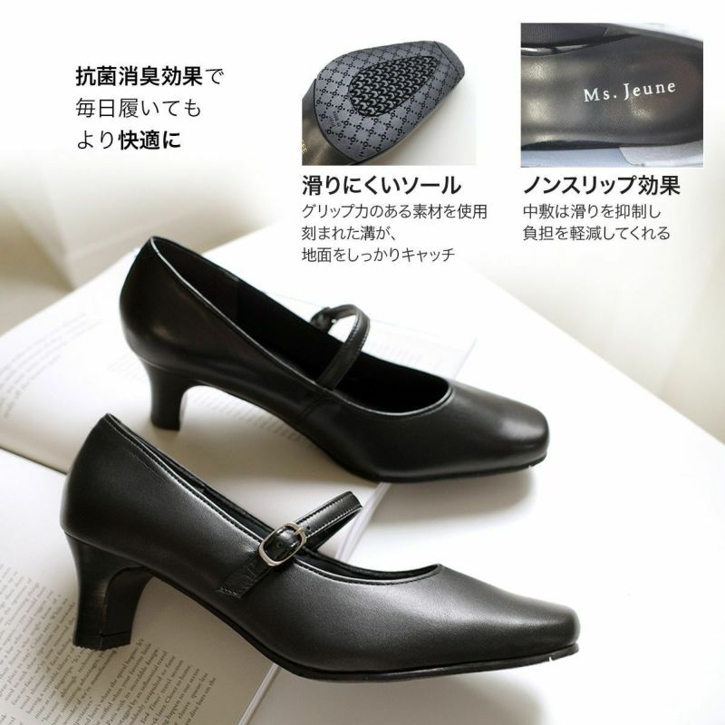 抗菌消臭効果で毎日履いても快適。美脚と歩きやすさを両立した5cmヒール。足に優しい3Eながらもスッキリとした美しいシルエット。
