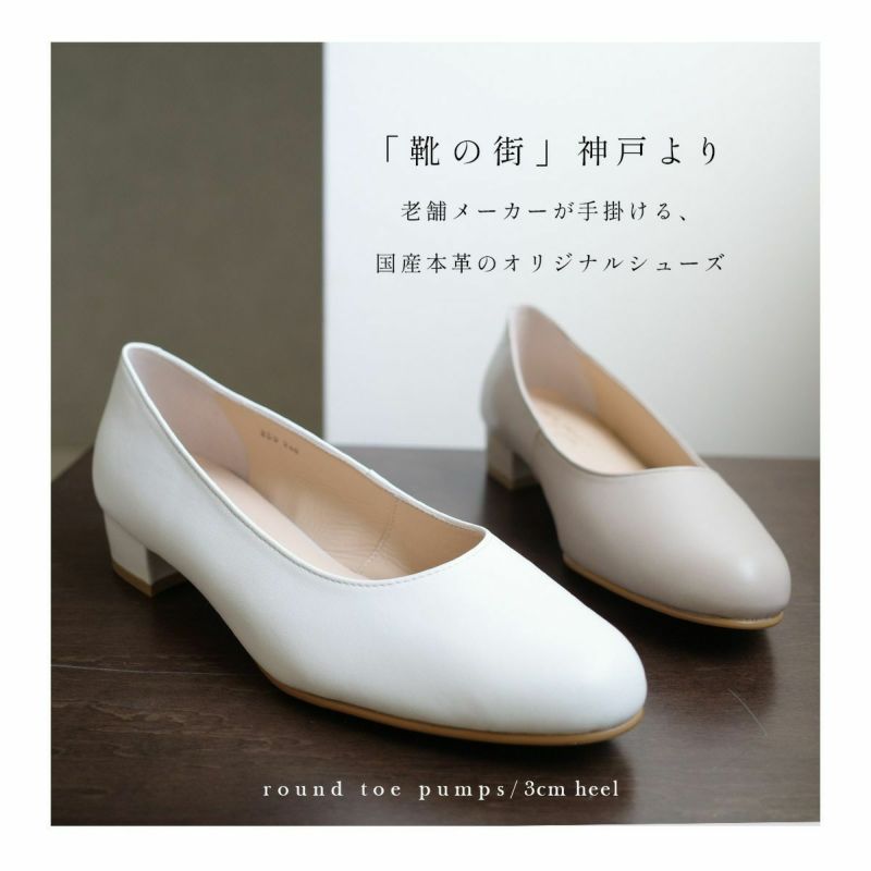 美脚ラウンドトゥパンプス日本製本革 レディース