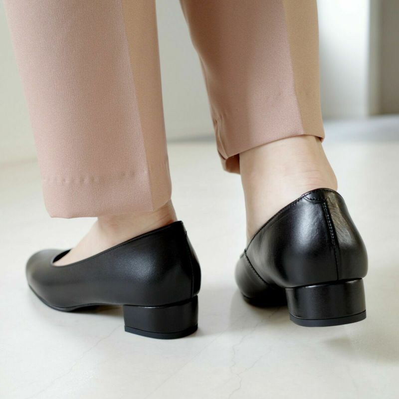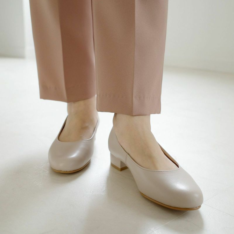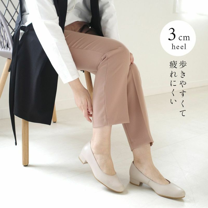 歩きやすく疲れにくい約3cmのローヒールパンプス。美脚効果も◎