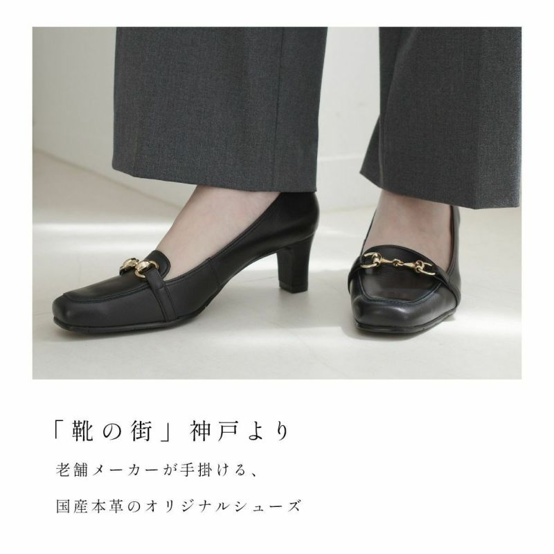 ビット付きヒールアップローファー日本製本革 レディース