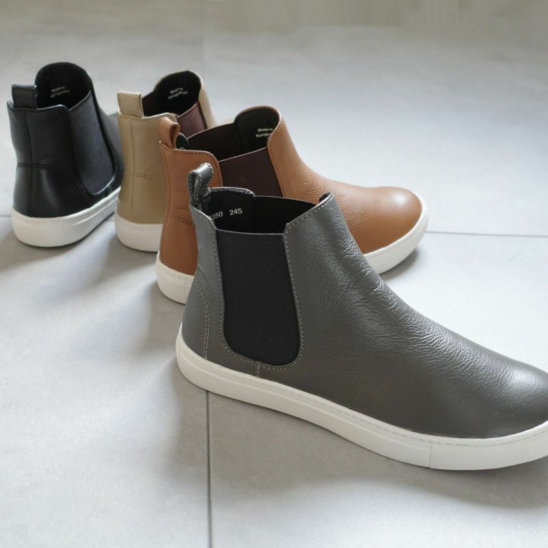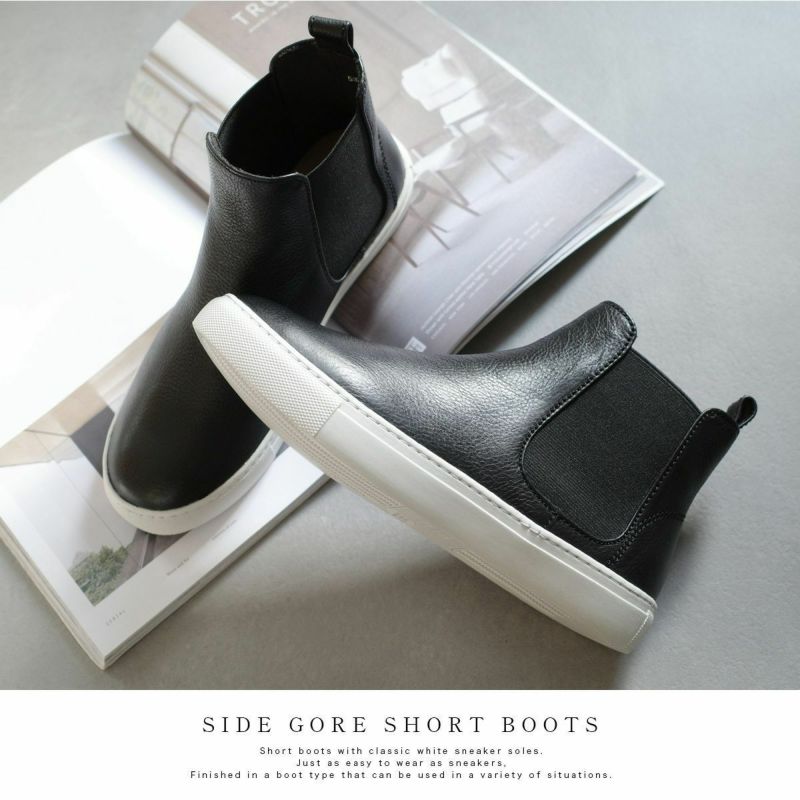 カジュアルかつ上質な大人のスニーカーブーツです。定番の白スニーカー底のショートブーツ。