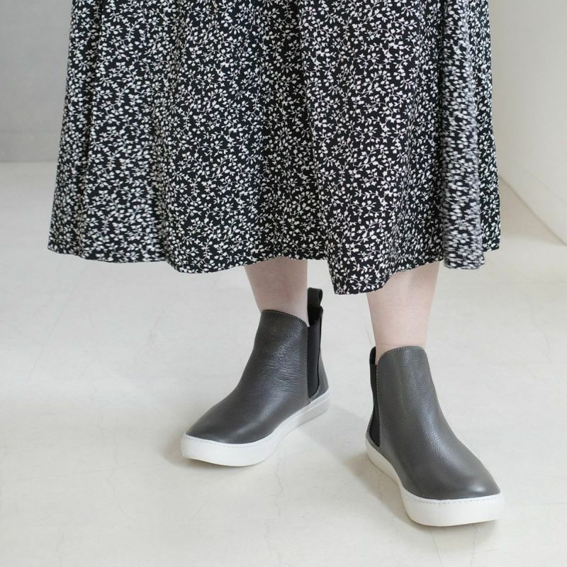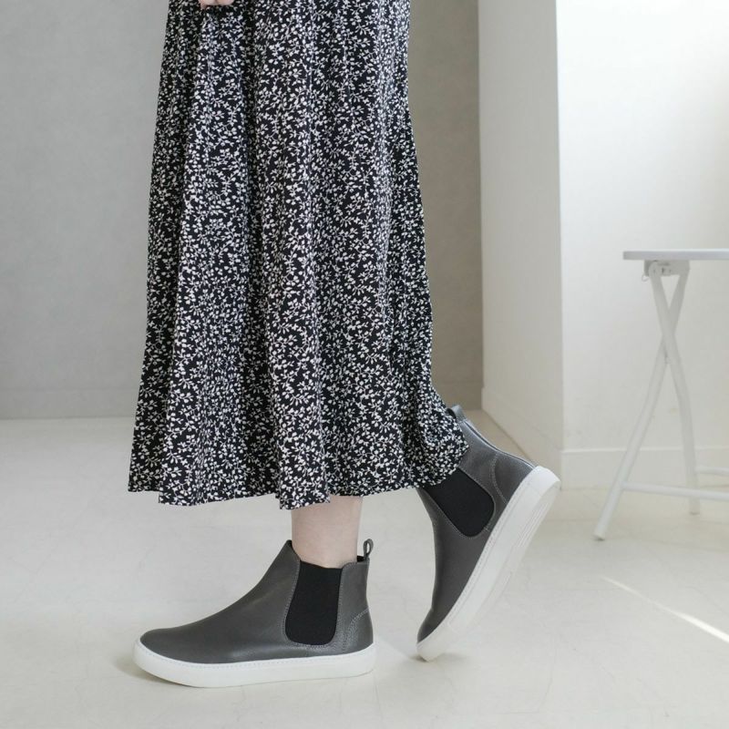 サイドゴアで脱ぎ履きしやすく、すっきりとした印象に。