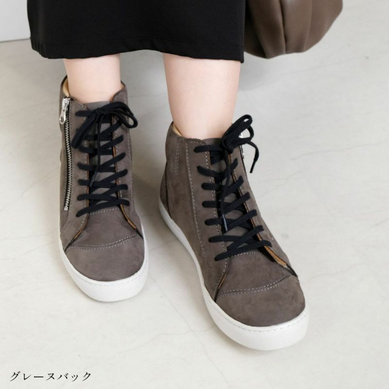 着脱しやすい位置のメタルファスナーがアクセントスニーカーの履きやすさそのままに、様々なシーンで活躍するブーツタイプに仕上げました。