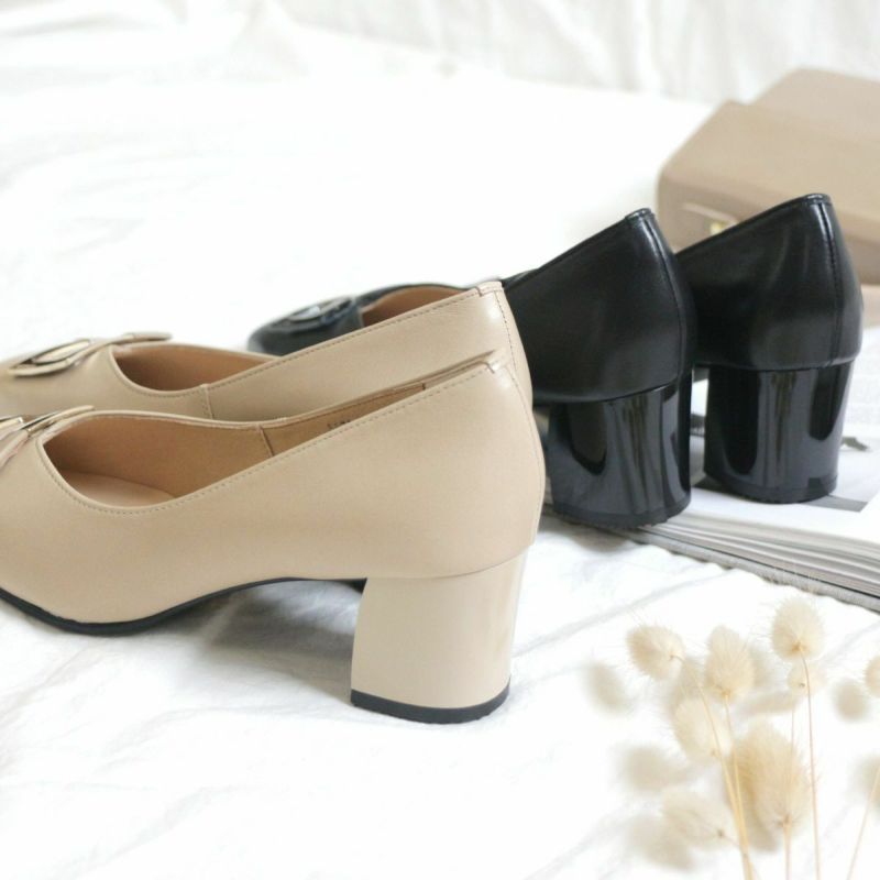 太めのチャンキーヒールで安定感もあり、ヒールのツヤ感がエレガントさをプラスしてくれます。