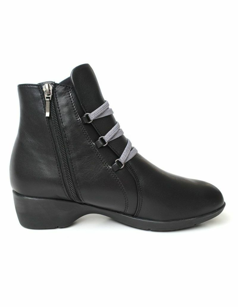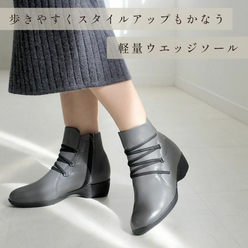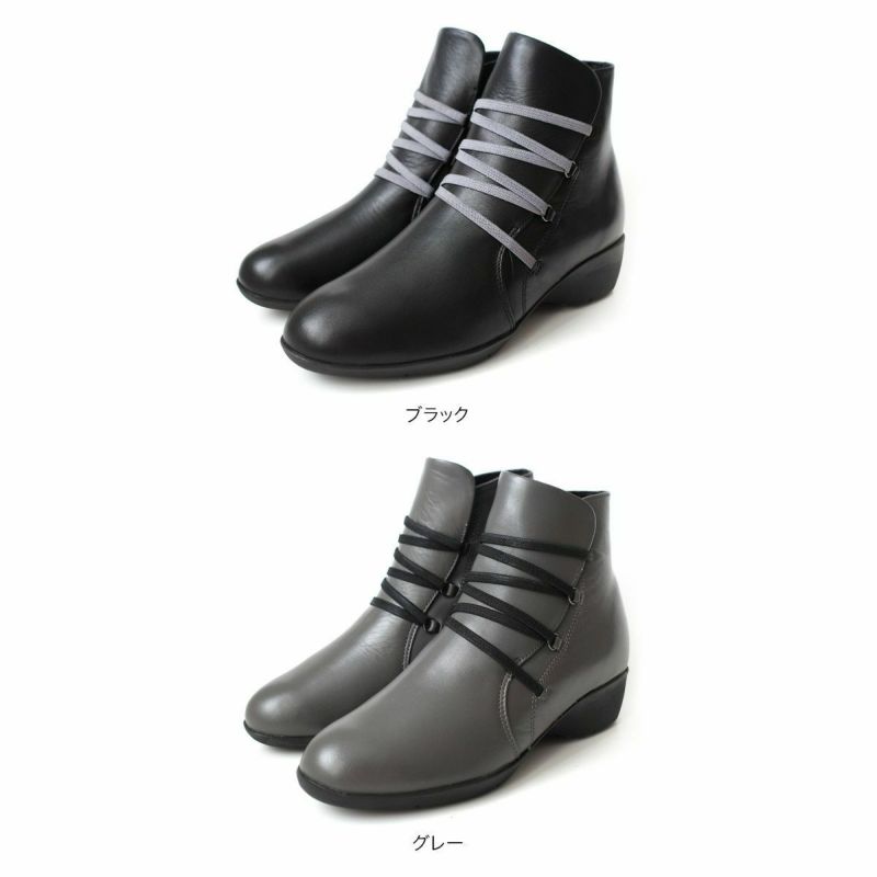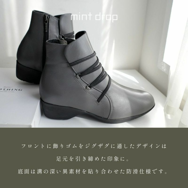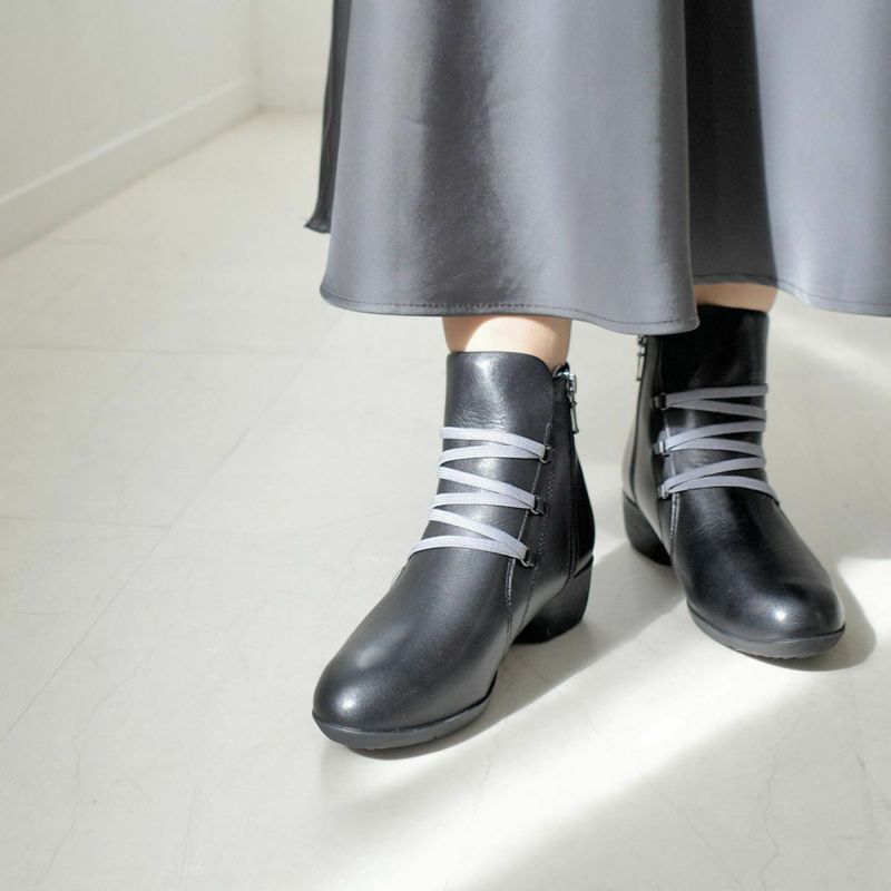 飾りゴムをジグザグに通したデザインが特徴的なショートブーツ