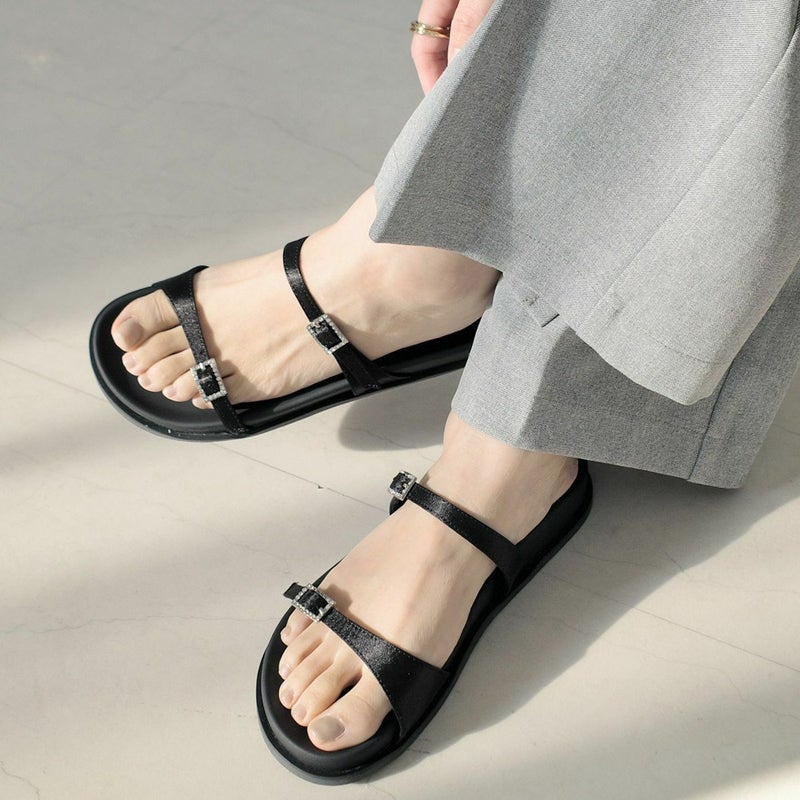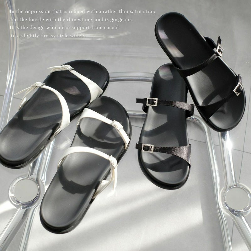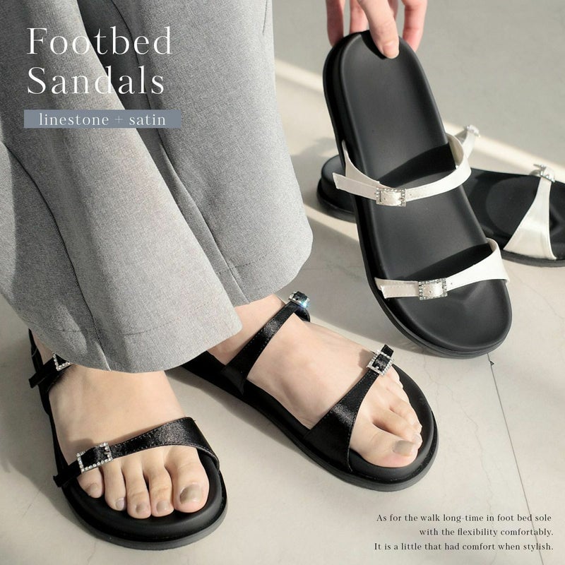 ラインストーン付きフットベッドサンダルサテンコンフォートサンダル レディース