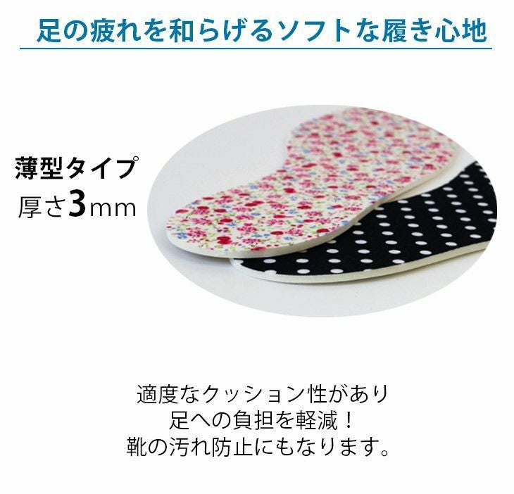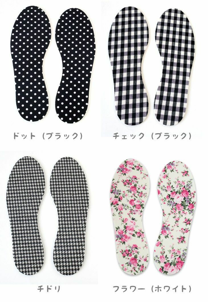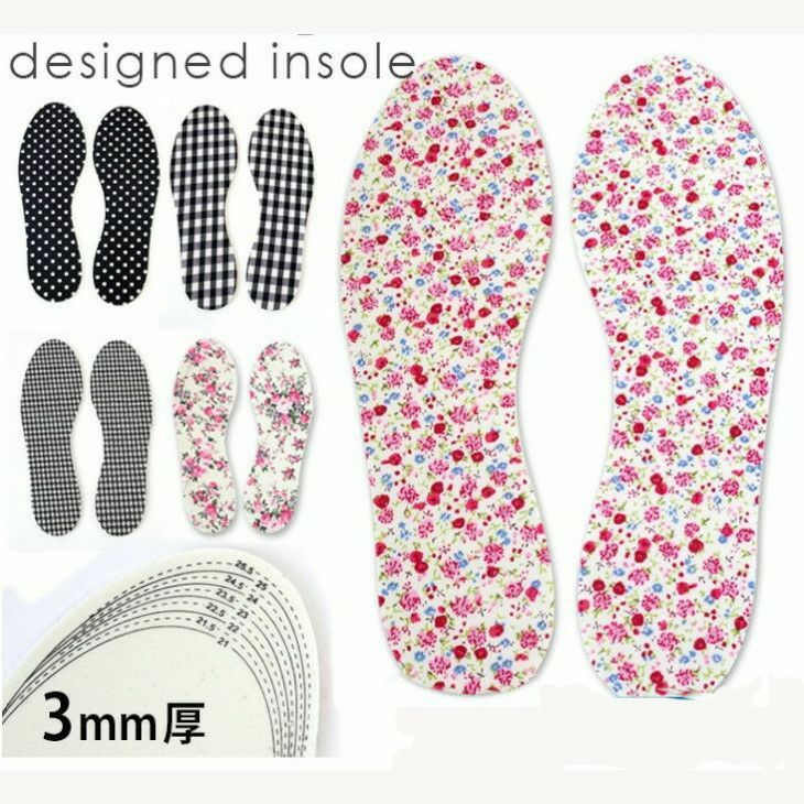 中敷き デザインインソール 薄型3ミリサイズ調整に 女性用フリーサイズ 水玉 ドット 花柄 千鳥 チェック クッション 靴の中敷き