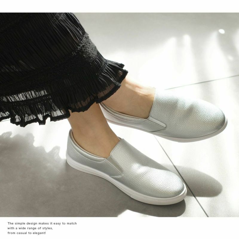 シンプルなデザインで、カジュアルからきれいめまで幅広いスタイルに合わせやすいアイテム!柔らかなアッパー生地と内側クッションで、足全体に優しくフィット。