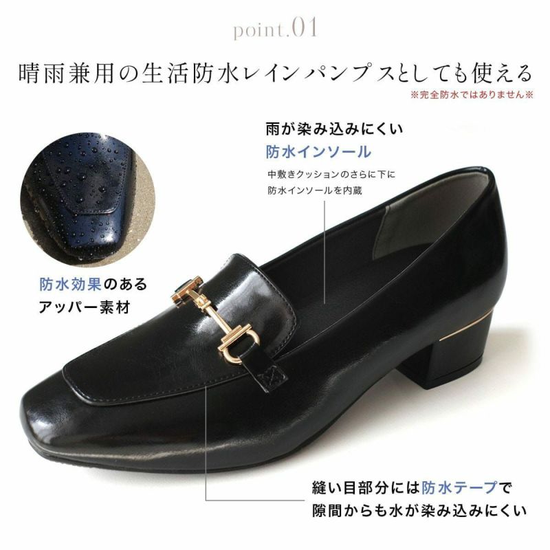 防水・防滑・快適な履き心地を兼ね備えた一足で、ビジネスやカジュアルシーンを問わず活躍します。シンプルなデザインの中にメタリックラインヒールが上品なアクセントに!