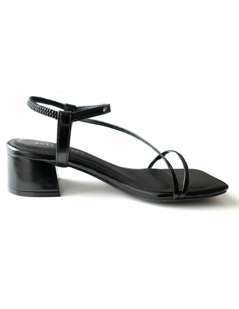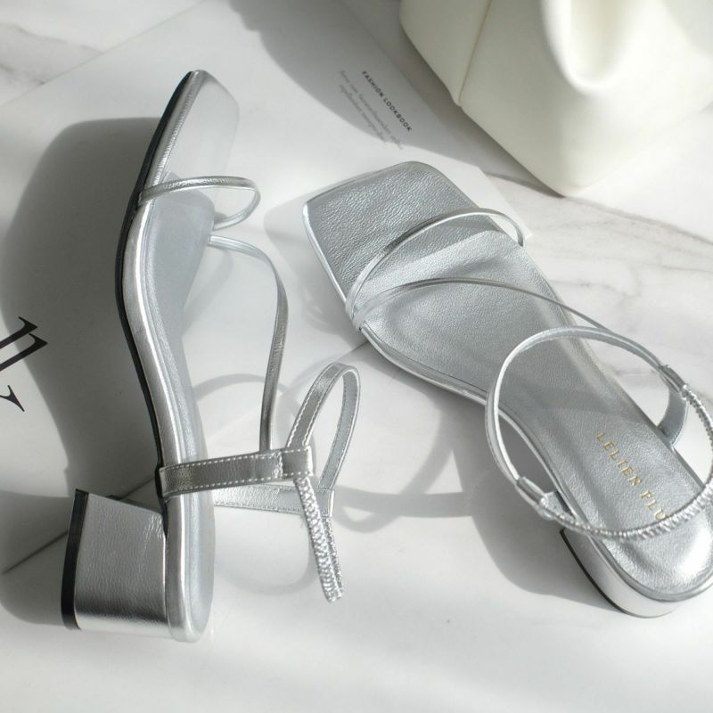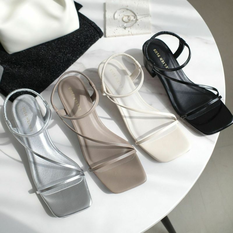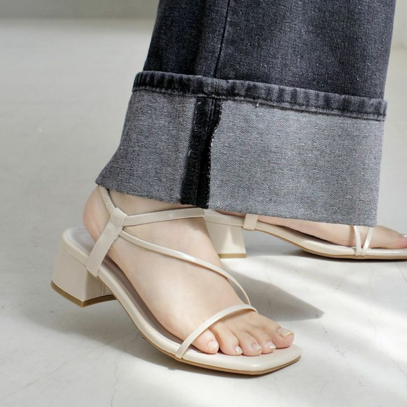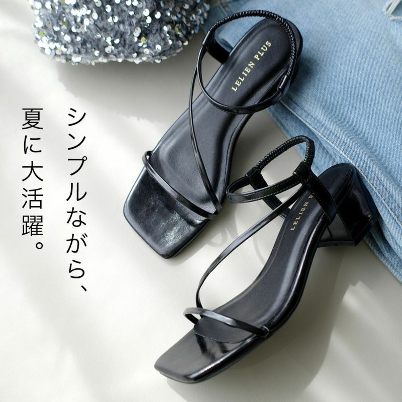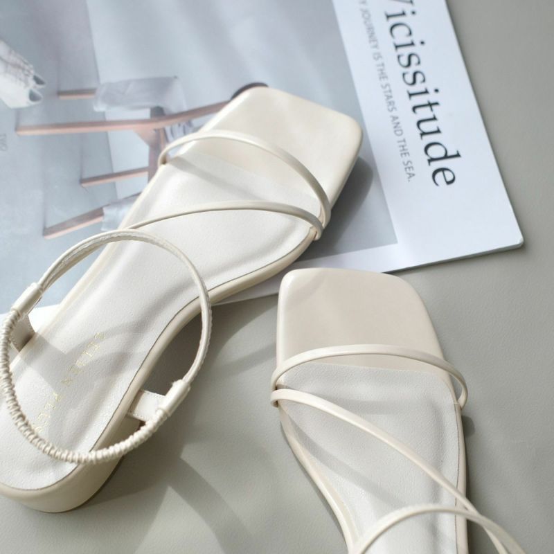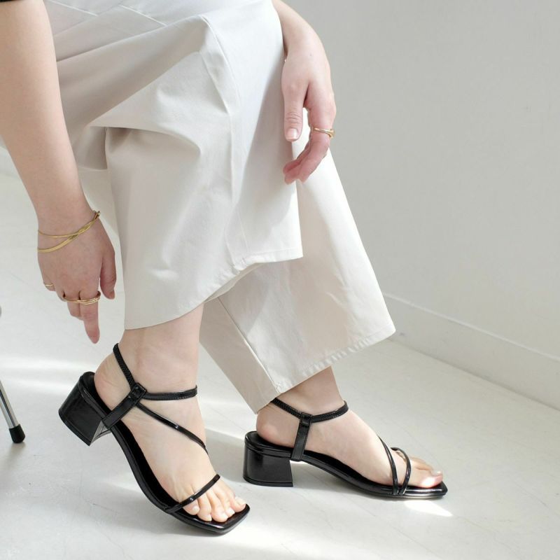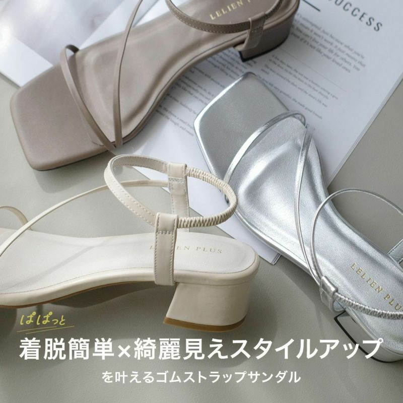 スクエアトゥゴムストラップサンダル華奢 レディース