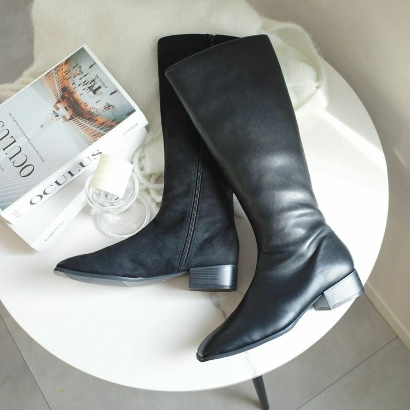 安定感のある低めヒールとスクエアトゥで上品なロングブーツ