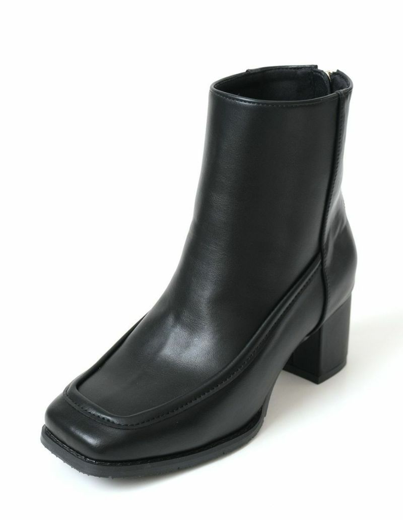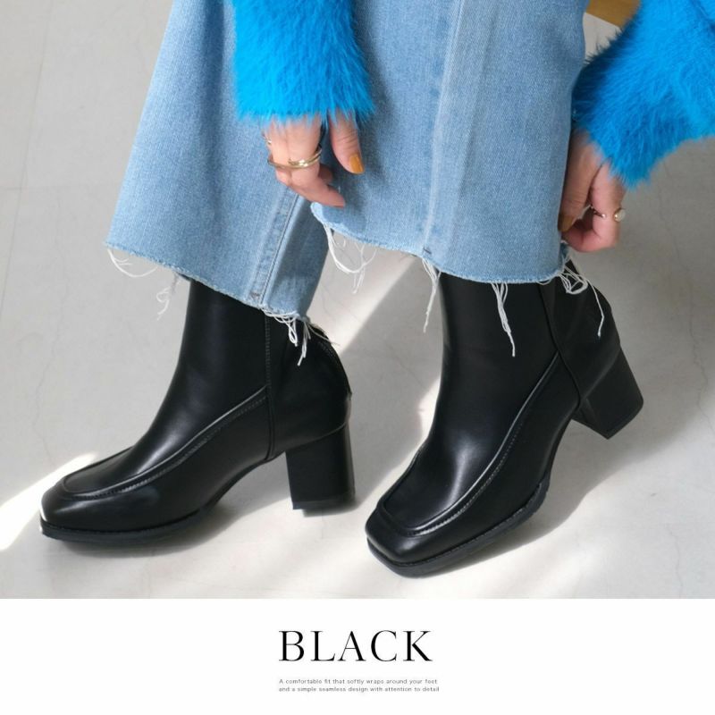 バックファスナーで脱ぎ履き楽ちん。ワイドなスクエアトゥショートブーツ