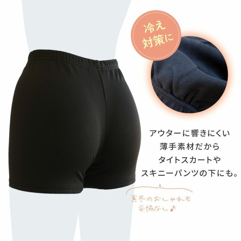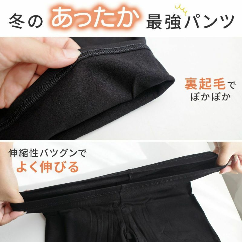 冷え対策起毛パンツ暖かくふわふわの裏起毛で冷えを防止。スカート着用時のオーバーパンツとしても活躍します。
