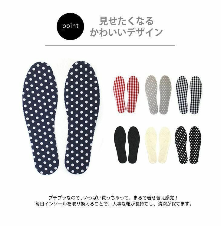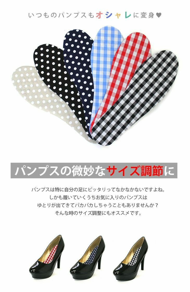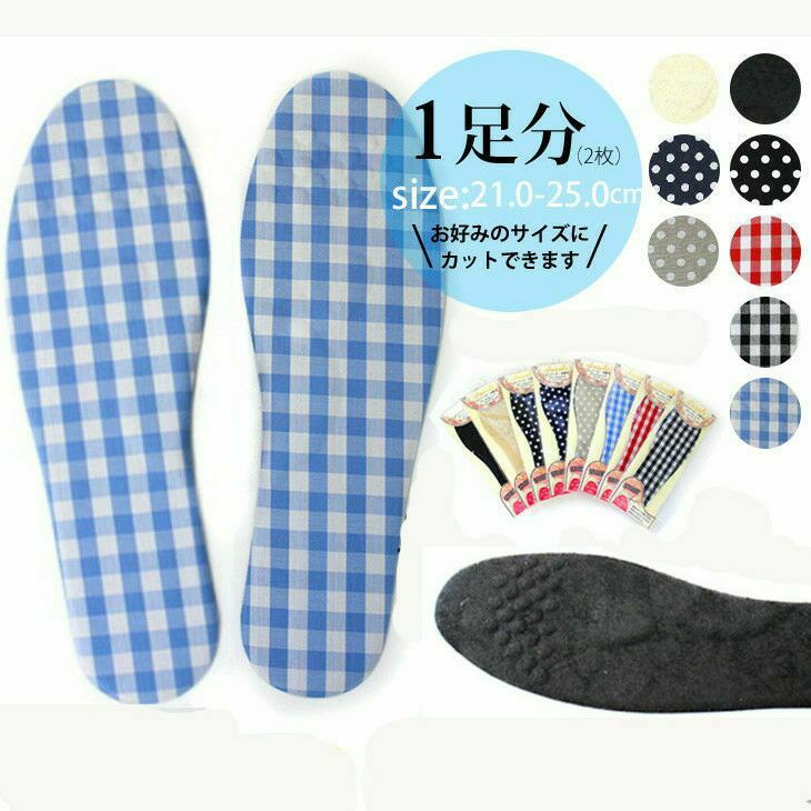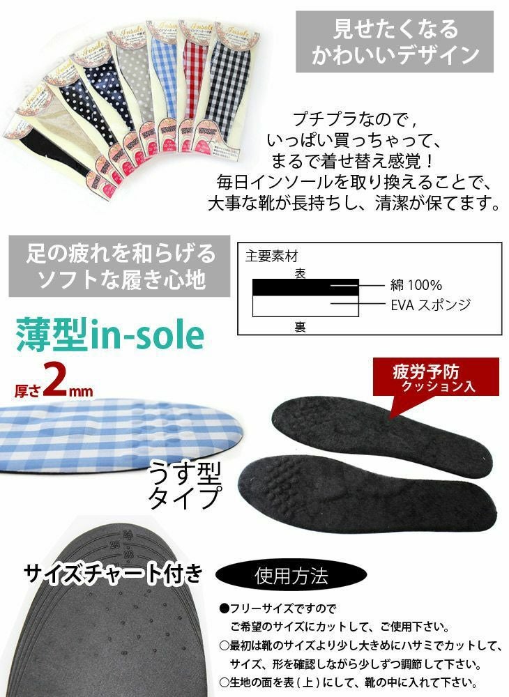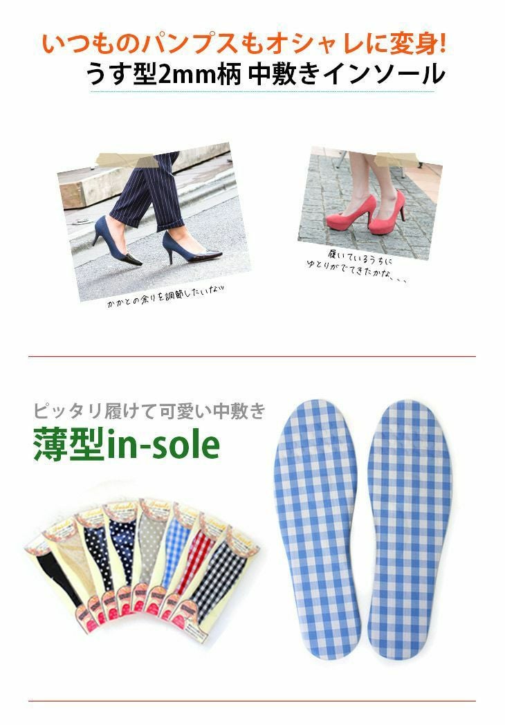 うす型2mm柄 中敷き インソールサイズ調整に 女性用フリーサイズ チェック ドット 無地 クッション 靴の中敷き