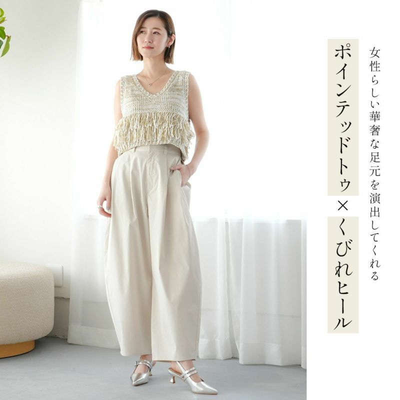 安定感と美脚の両方が叶う5cmくびれヒールで歩きやすく、カジュアルなスタイルにも女らしさを加えてくれます。