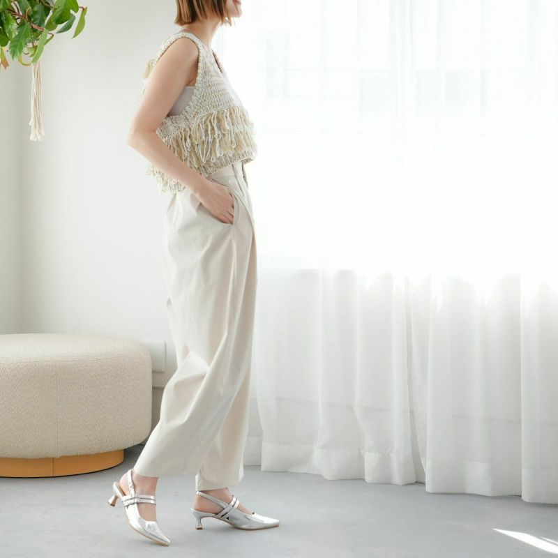 女性らしい華奢な足元を演出してくれるバックストラップミュール