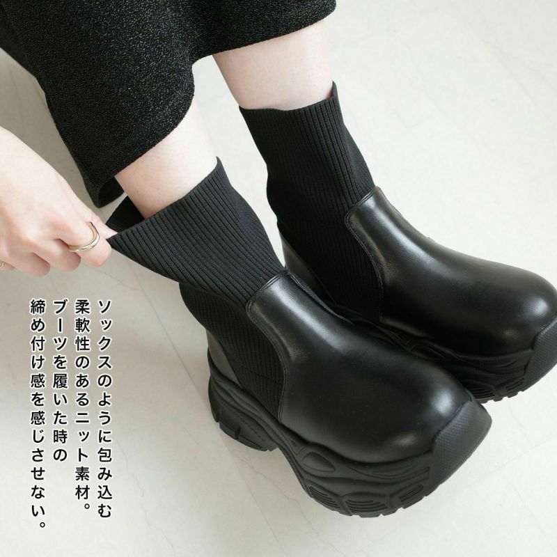ボリュームのあるソール×ニット素材でスタイルアップが叶う「優しい足当たり」と「おしゃれ」を兼ね備えた優秀ブーツ。