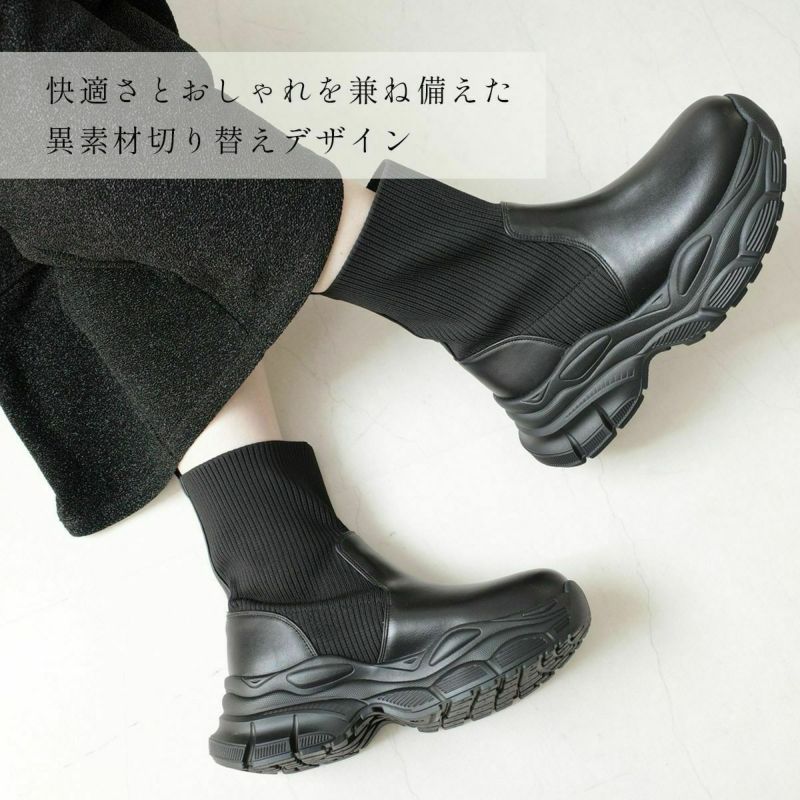 旬なスタイリングを叶える異素材厚底スニーカーブーツ