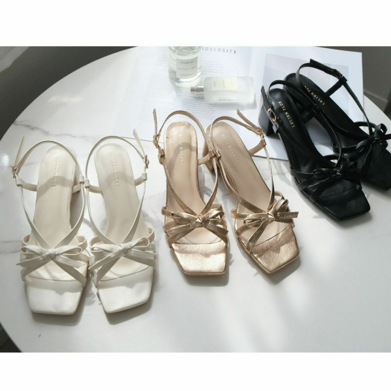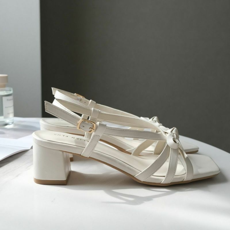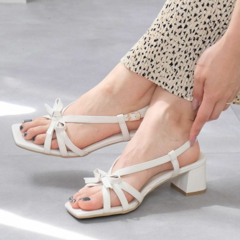 華奢なストラップにリボンがアクセントになったストラップサンダル