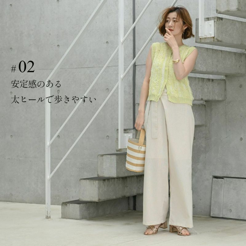 安定感のある太ヒールで歩きやすく、デイリー使いにもぴったりです。