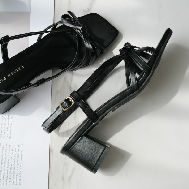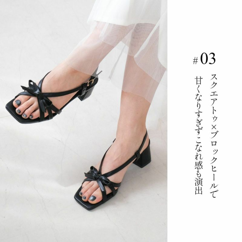 スクエアトゥ×ブロックヒールで甘くなりすぎずこなれ感も演出ストラップはゴム仕様で脱ぎ履きもしやすくフィット感もアップ!