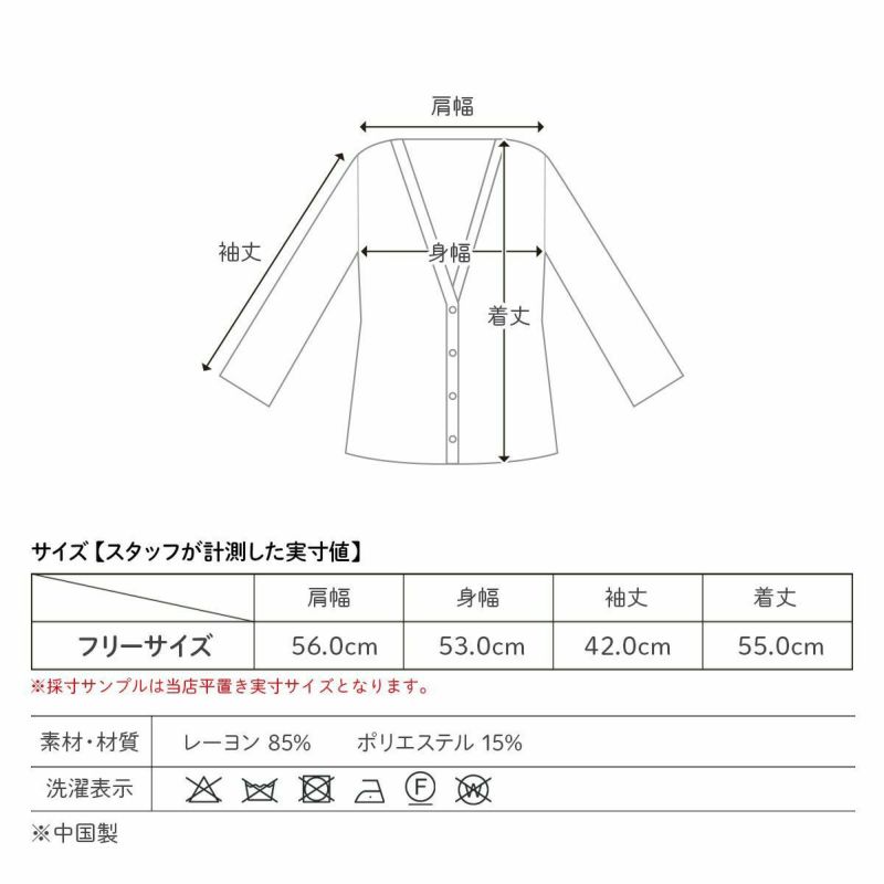 ■フリーサイズ: 肩幅 56cm/身幅 53cm/ 着丈 55cm / 袖丈42cm (※スタッフが計測した実寸値)
