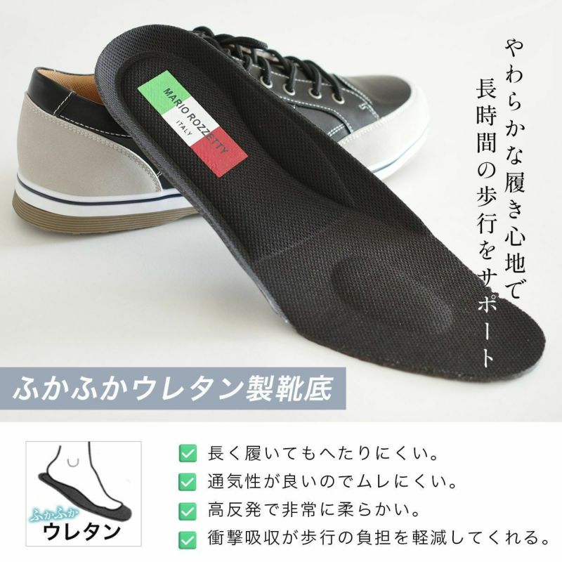 抗菌防臭機能付きふかふかウレタン製靴底なのでやわらかな履き心地で長時間の歩行をサポート。