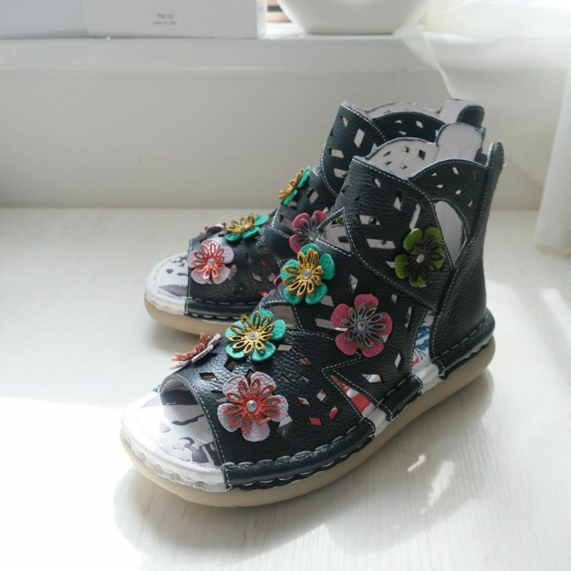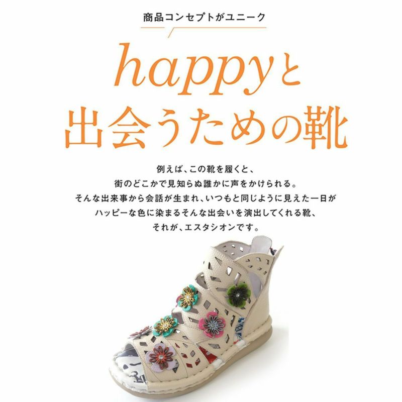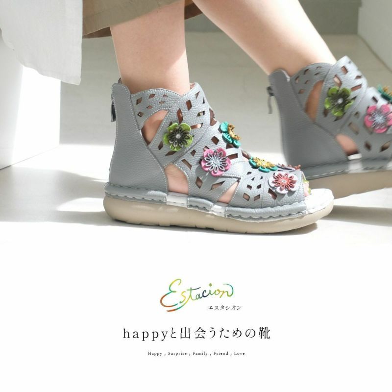 【在庫限り!特別価格!】サンダルブーツサンダル牛革コンフォートバックファスナーパンチングカットフラワーモチーフフィールドEstacion レディース