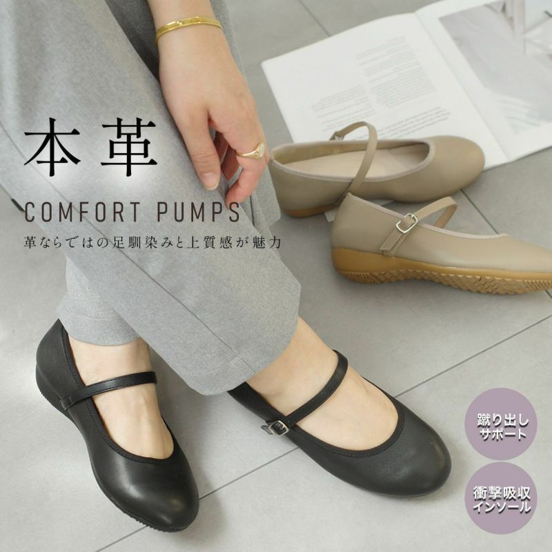 スニーカー感覚で履ける本革コンフォートパンプス。
