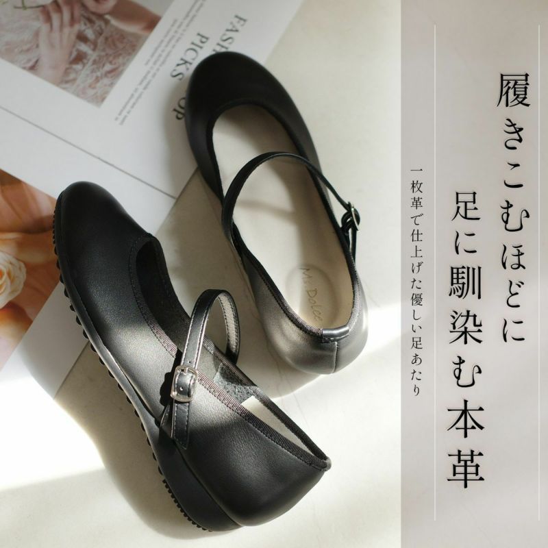 お仕事でも、お出かけでも活躍!革ならではの足馴染みと上質感が魅力です。一枚革で仕上げた優しい足あたり。隠しゴムストラップで脱ぎ履き楽ちん!