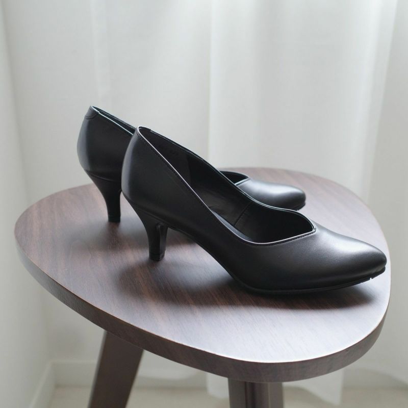 すらりとした6cmヒールとVカットが、華奢で美しい足元を演出。抗菌消臭効果で毎日履いても快適。