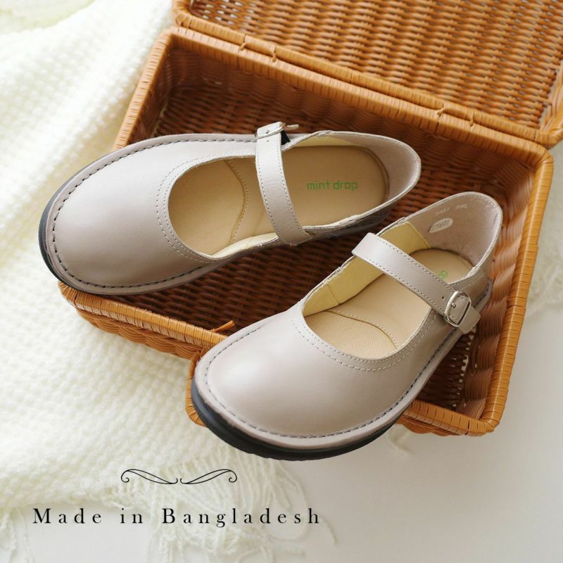 中敷きのつま先側は前滑りしにくいメッシュ素材、かかと側には肌触りの良い本革を使用ししています。