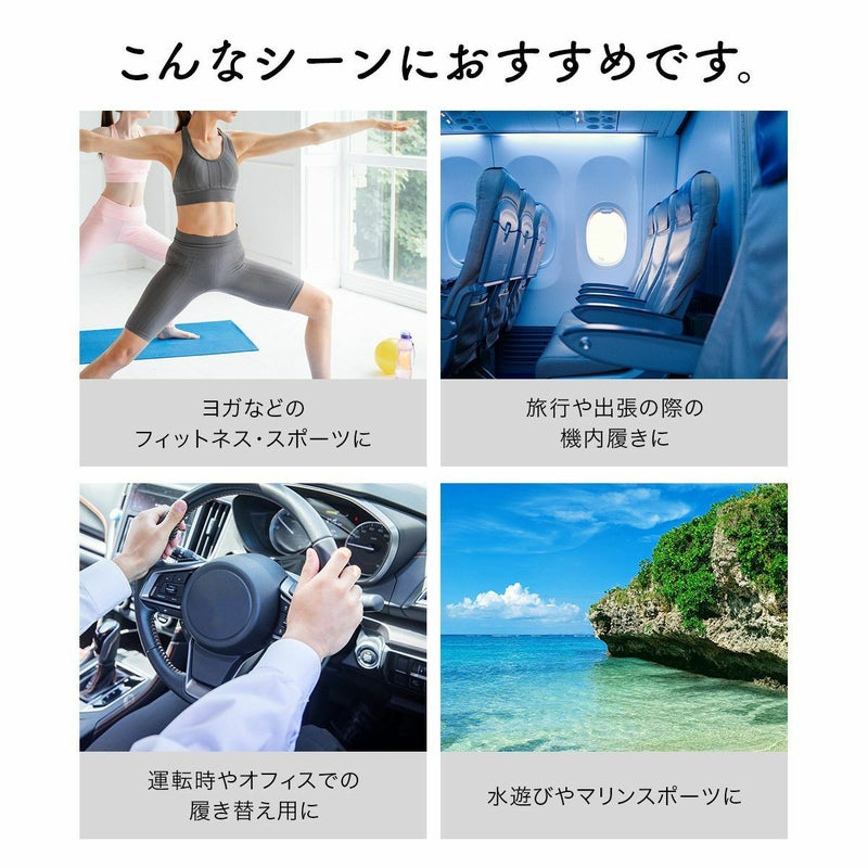 窮屈な移動時間も足を締めつけず快適に。