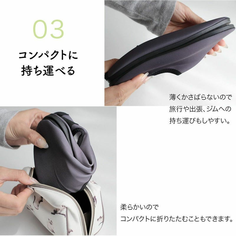 ヨガやストレッチなど屈曲性の必要な運動にもぴったりの柔らか・滑り止め付き設計。コンパクトに持ち運べるので、ジムだけでなく長時間のフライトでも活躍します。