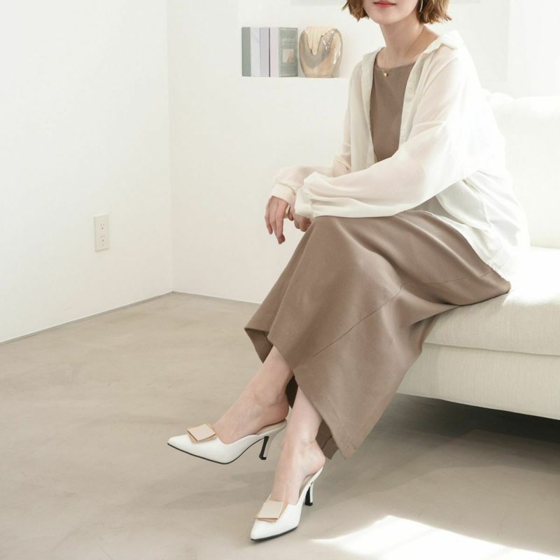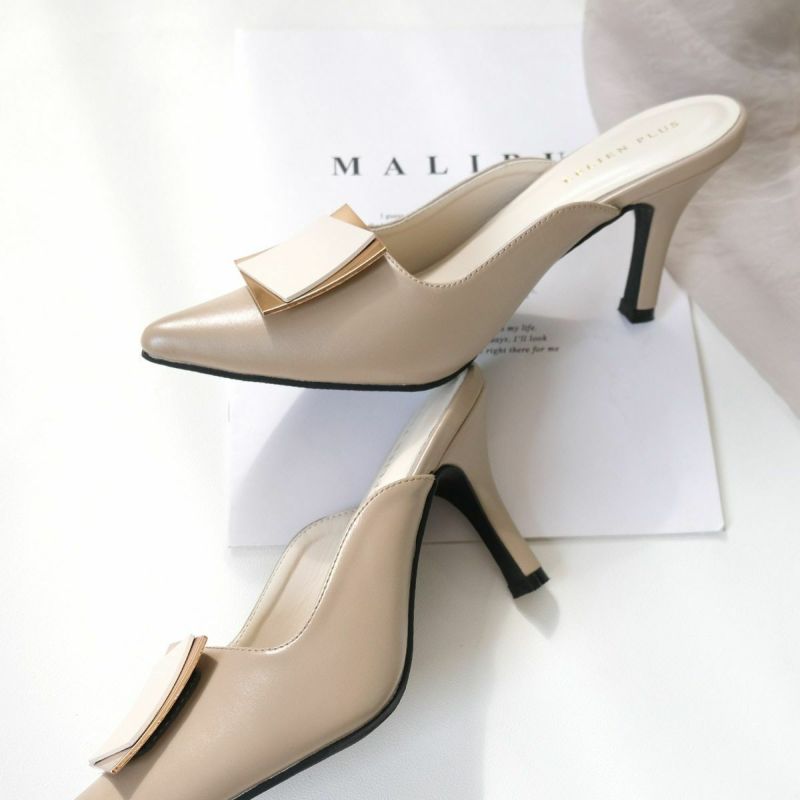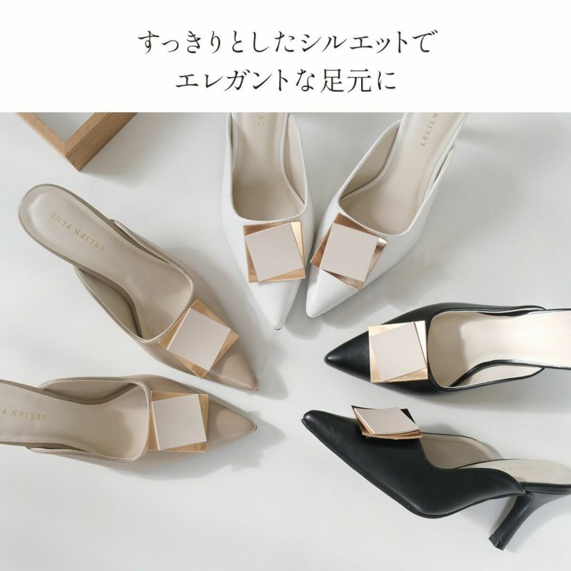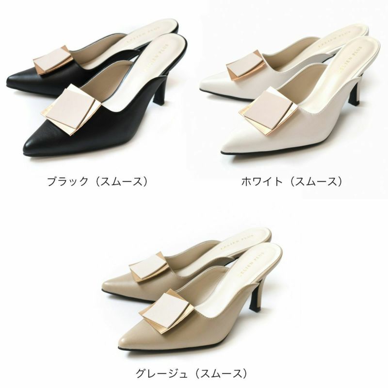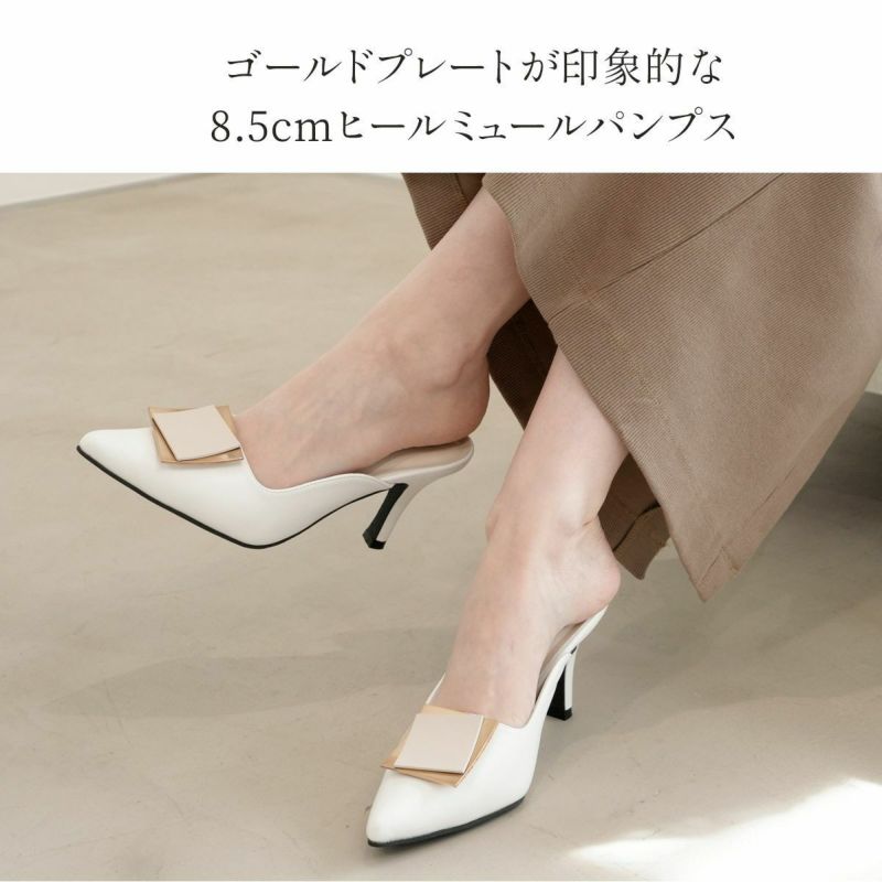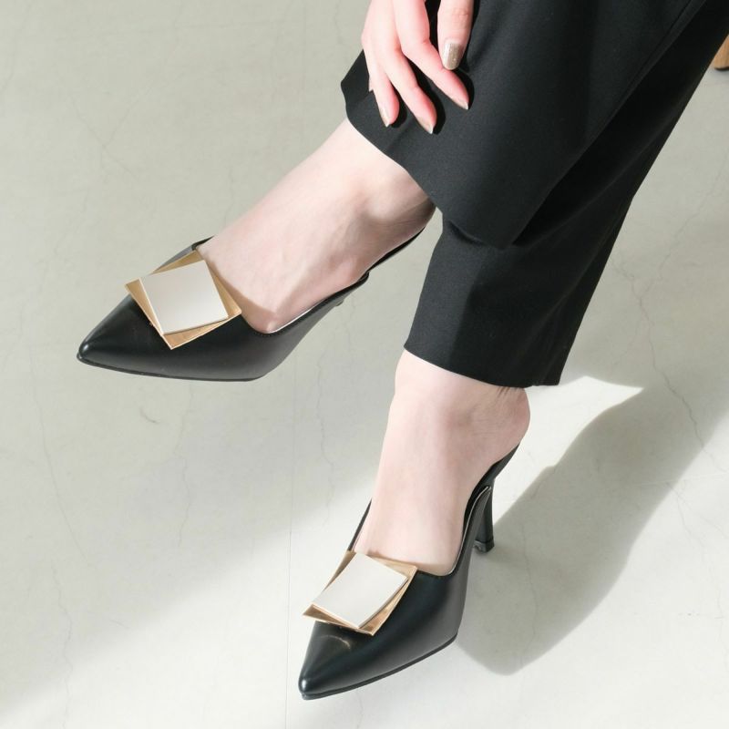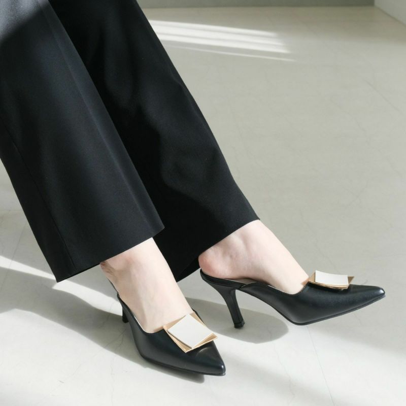 ゴールドプレートが印象的なミュールパンプス
