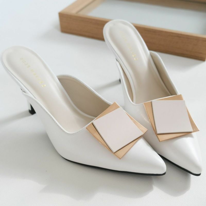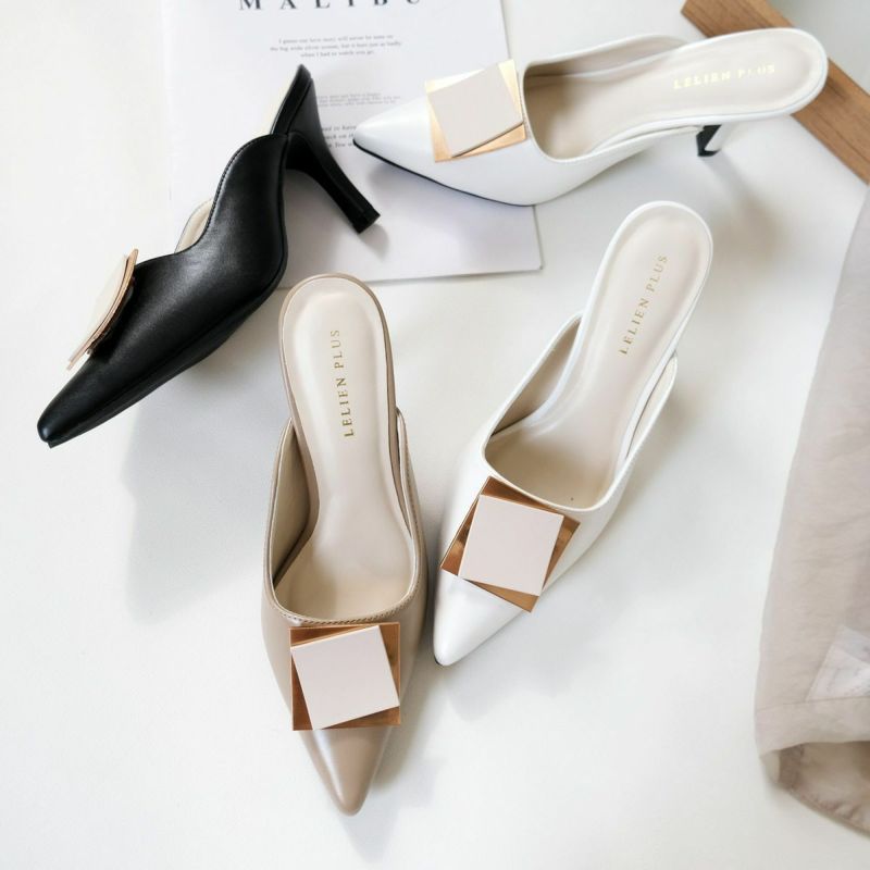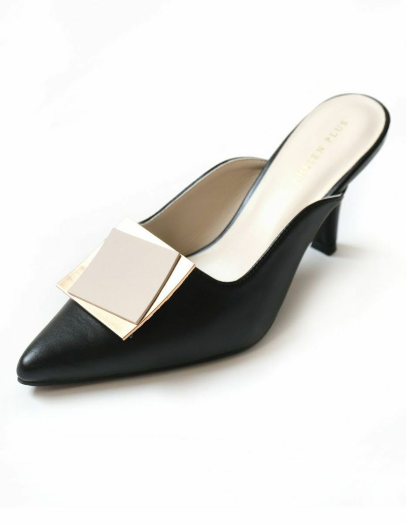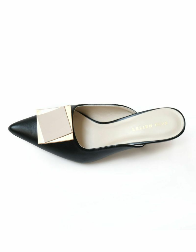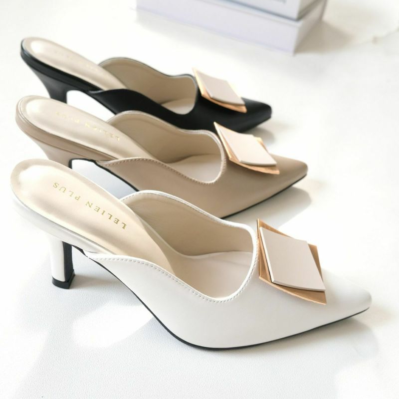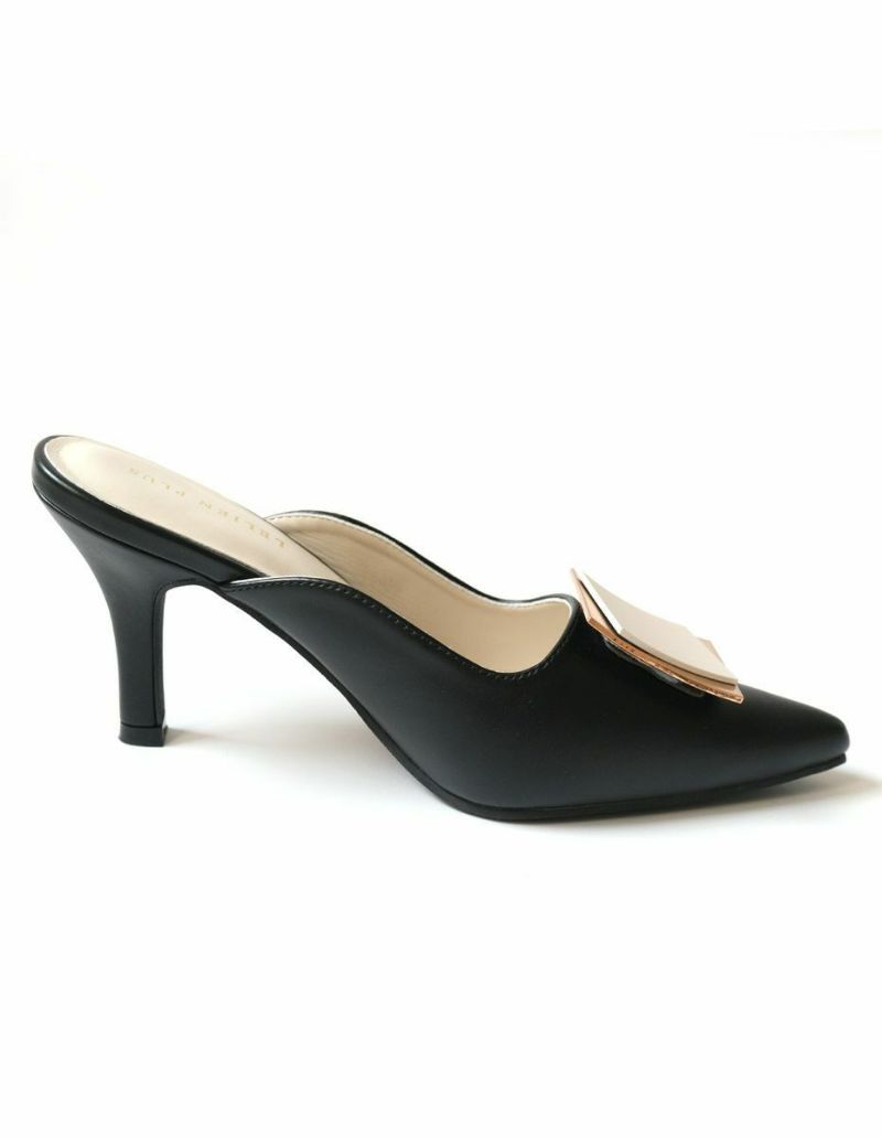 ゴールドプレートが印象的なミュールパンプス